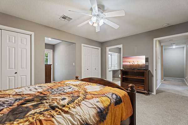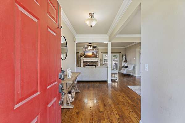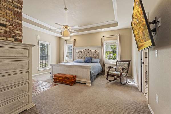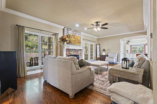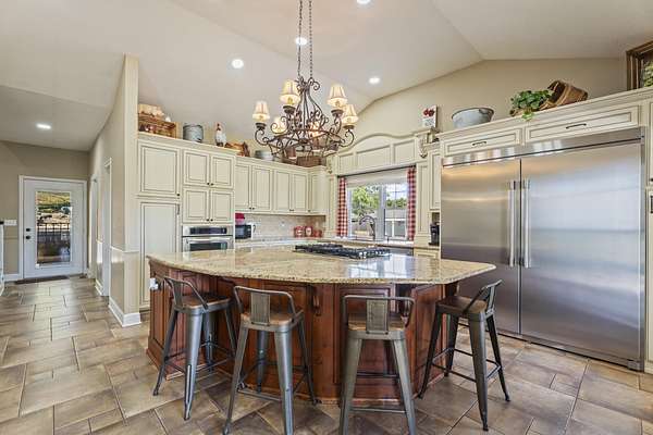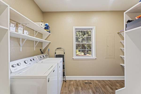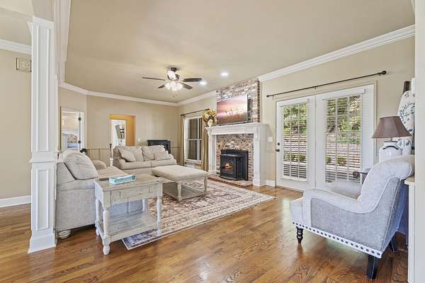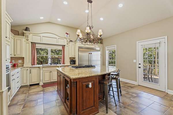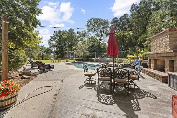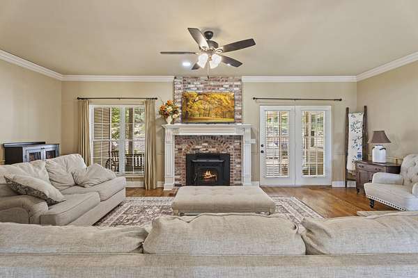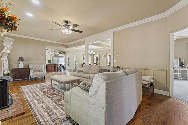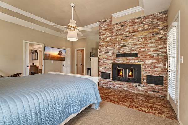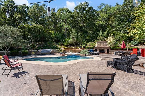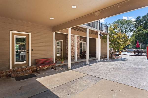 Beautiful 120-acre farm featuring a spacious 4-bedroom, 3.5-bath home with granite countertops in the kitchen, two living rooms each with its own fireplace, and a primary bedroom with fireplace located downstairs. Upstairs offers 3 bedrooms and 2 baths, providing plenty of room for family or guests. A 1-bedroom, 1-bath guest house includes a living room, fireplace, and attached garage. Outdoor amenities include a lighted and covered 1/2 basketball court, tractor storage, an in-ground pool with Cool Deck surface and outdoor fireplace, cross-fencing for livestock, 4 ponds, and a creek - the perfect farmstead retreat!