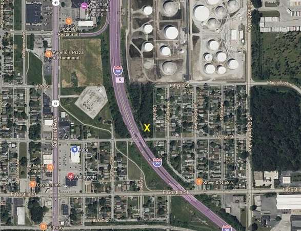 From Calumet Avenue, East on Huehn. Northeast quadrant Huehn and the Toll Road. Land extends from Huehn North to tank farm fence. (143rd St)