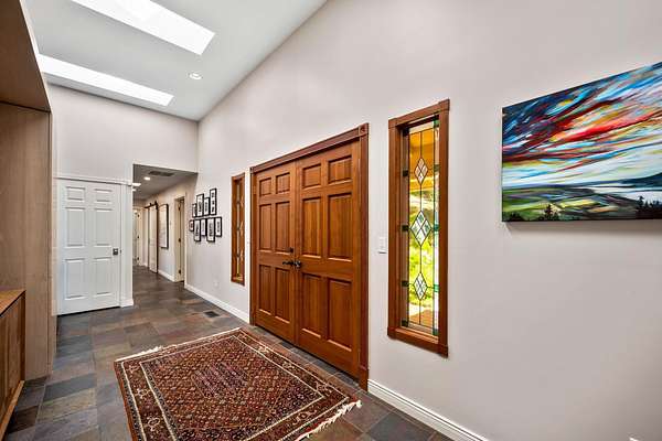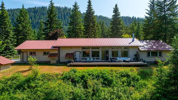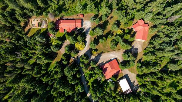 Exceptional gated luxury estate on 28 pristine acres! This one-of-a-kind retreat captures breathtaking panoramic views of the Pend Oreille River & mountains. Designed to impress, the beautifully appointed 3,184 sq ft single-level main residence features soaring 12-ft ceilings, exquisite hardwood floors, dramatic stone fireplace, custom lighting, walls of windows & large sky lights that flood the home with natural light. The gourmet kitchen is a showpiece w/quartz countertops, premium appliances & an expansive prep space, seamlessly connecting to the open-concept living & dining areas. The thoughtful layout offers 2 en-suite bedrooms plus two additional bedrooms w/shared bath. Relax on the deck w/inset fire table. Plus a private 1,200 sq ft guest home w/1bd, 2 bths, vaulted ceilings & cozy wood stove provides ideal accommodations for guests & multigenerational living. Enjoy a 60x70 heated shop & 60x30 5-car garage! Equally remarkable grounds w/mature fruit trees, fenced garden, greenhouse, wildlife & trails!