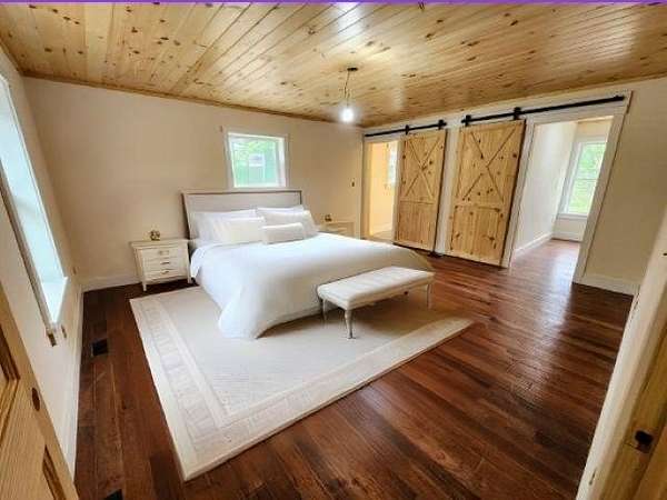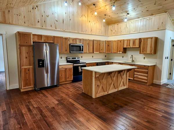 Brand-New Custom Home on 1.5 Acres - Almost Complete and Move-In Ready by Closing! Just minutes from Potsdam and in the Potsdam School District. Welcome to your dream home--beautifully crafted and thoughtfully designed, inside and out. Nestled on 1.5 acres with high sandy soil for excellent drainage, this custom-built home offers peace of mind, modern comfort, and style in every detail. Inside, the main floor features three bedrooms and two full bathrooms, including a spacious primary suite with a luxurious ensuite and a large walk-in closet. The open-concept kitchen, dining, and living area is the true heart of the home, showcasing soaring wood cathedral ceilings and stunning 3/4 " solid hickory floors. The kitchen is both warm and functional, with rich hickory cabinetry, sleek quartz countertops, a large gathering island, and high-end appliances--all included. Every bedroom on the main floor is equipped with a ceiling fan with light. A generously sized laundry/mudroom completes the main level, equipped with washer, dryer, shelving, and hooks for added convenience. All interior doors are solid pine, finished with a clear poly for timeless appeal. The lower level (basement) is finished--except the utility room--and includes a large additional bedroom (or office) with a drop ceiling for future plumbing access, and a massive 54' x 12'9" bonus room with endless possibilities. Basement ceilings are finished in wood and walls in drywall. Waterproof vinyl plank flooring ensures durability and style. Step outside to enjoy two large, covered porches--one at the front and an even larger one at the back, both with cedar-finished ceilings and lighting. Whether you're sipping morning coffee or hosting guests, these spaces offer the perfect setting. A custom standing seam metal roof ensures decades of durability, and the detached, oversized two-stall garage includes two power doors. There is an attached outdoor storage area to keep tools and equipment out of sight and out of the garage. The yard is level and private. Additional features: 305' deep well producing 7.5 gallons per minute Excellent drainage thanks to high, sandy soil Peaceful, wooded backyard views 1.5 miles outside the village of Potsdam Don't miss this rare opportunity to own a brand-new, custom home with quality finishes and room to grow. Ready by closing--schedule your tour today! Estimated taxes listed on the MLS apply only to a vacant lot. After contacting the assessor's office, the approximate taxes on this property would be $6,670 for Potsdam School Taxes and $2,915 for the town and county. These rates do not include any STAR, Military or any other discounts. Some of the photos have been staged using AI to show possible furniture layouts. No walls or permanent fixtures have been changed.