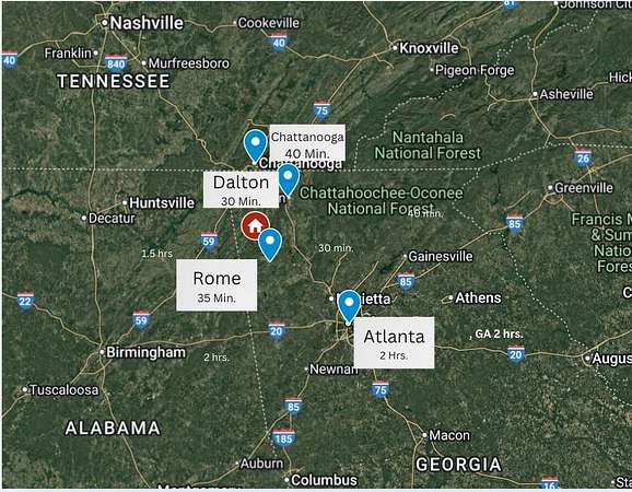 US-27S, L onto Lyle Jones Pkwy, R onto GA-337, L onto Trion Hwy, R onto Walnut Grove Rd, L onto Chattooga Line Rd, R onto Farm Rd. R through field to the house.