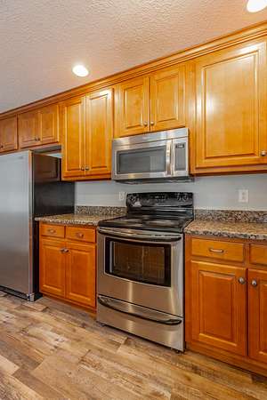 - Dishwasher, Electric Oven, Electric Water Heater, Free-Standing Range, Microwave, Oven, Refrigerator, Stainless Steel Appliance(s)