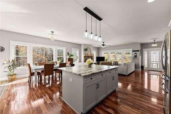 There are very few properties in the Athens and Jefferson area that manage to feel this private while staying so connected to everything. This is a true craftsman home, sitting on a rare stretch of riverfront with 400 feet of direct water frontage. If you've been looking for a place where the kids can actually get outside and explore, this is it. Inside, the home is designed for the way a family actually lives. The kitchen features thick marble countertops and an open layout that keeps everyone in the conversation, whether you're making breakfast or hosting friends. We've kept the floor plan functional: the owner's suite and two additional bedrooms are all on the main level, so you don't have to deal with stairs just to get through your daily routine. The "extras" here are what really set it apart: The Bonus Room: At 900 square feet, this isn't just a small loft. It's massive. It's the perfect spot for a dedicated theater, a serious home gym, or the ultimate playroom to keep the toys out of the main living area. Garage Space: Beyond the 3-car garage, there is a separate garage door in the basement specifically for your lawn mower or outdoor gear. It's a small detail that makes maintaining a riverfront property significantly easier. This is a high-end, comfortable home in a location that's incredibly convenient to Hoschton and the surrounding corridor. It offers the kind of space and quality that's getting harder to find.