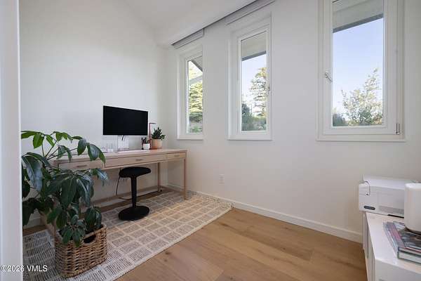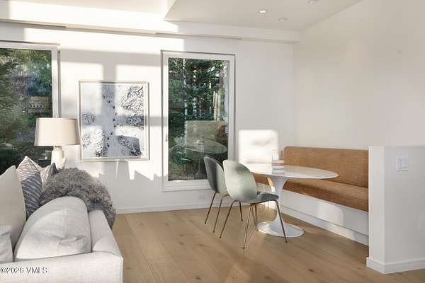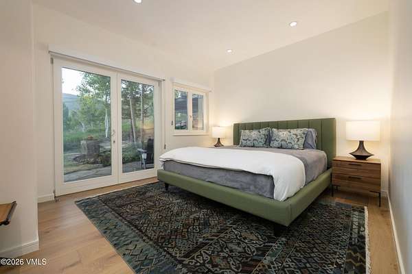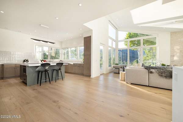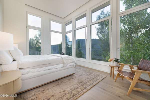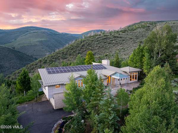 Tucked at the end of a quiet cul-de-sac on a rare 1.79-acre homesite, 4340 June Point offers exceptional privacy, ski slope views to the south, and timeless mountain elegance. Surrounded by aspens and bordered by open space, this 4-bedroom, 4.5-bath residence is a refined retreat designed for gathering and lasting family memories. Floor-to-ceiling windows frame Red and White Mountain while filling the living spaces and primary suite with natural light. Constructed with glass, stone, steel, and concrete panels, the home blends architectural strength with warmth. Sustainable features, including solar panels, enhance efficiency. All 4 bedrooms open directly to the outdoors, inviting seamless indoor-outdoor living. A secondary main-level suite offers flexibility for guests or a private office. The chef's kitchen features premium European appliances, custom cabinetry, a walk-in pantry, and a butler's pantry--ideal for both intimate dinners and larger entertaining. A lower-level family room with kitchenette provides additional space for relaxation and hosting. Recent updates include wide-plank oak flooring, refreshed paint, updated baths, custom primary closets, a redesigned island, and enhanced landscaping and outdoor living areas. A 2.5-car garage and generous storage accommodate vehicles and mountain gear with ease. 4340 June Point is a private alpine sanctuary where luxury, comfort, and natural beauty come together.