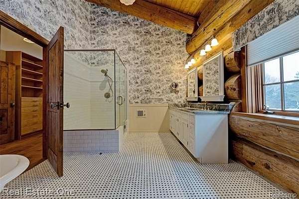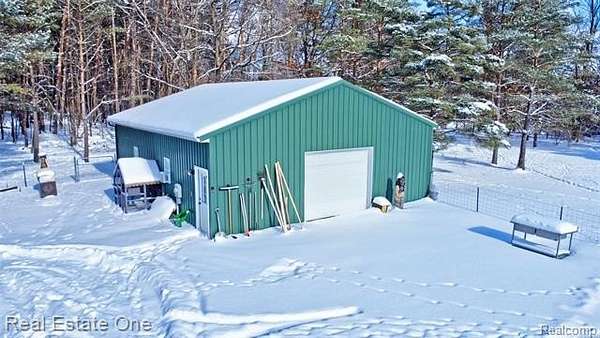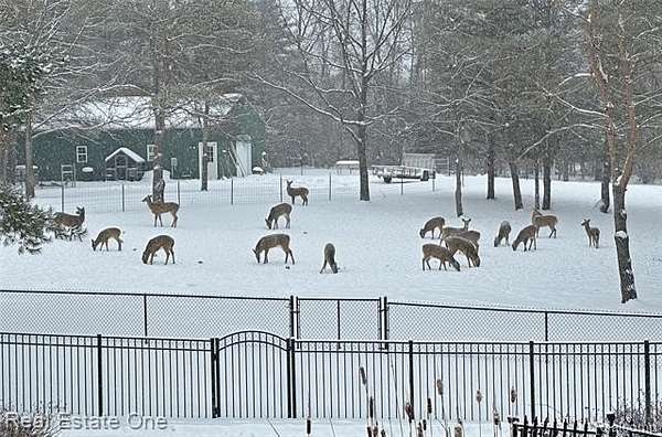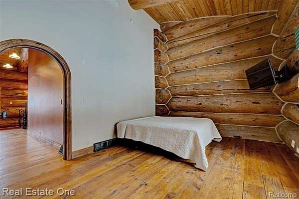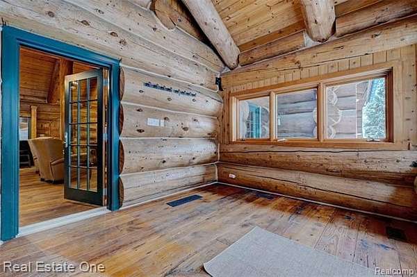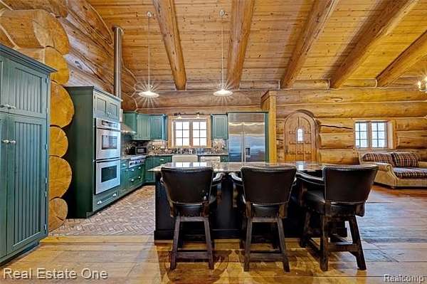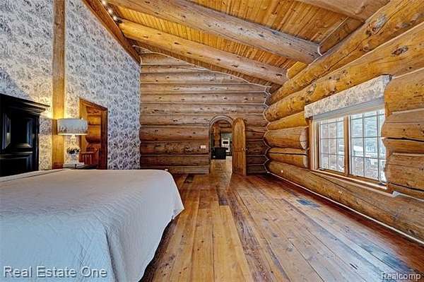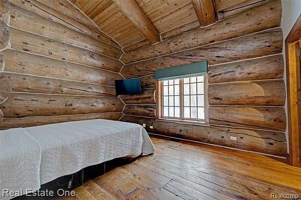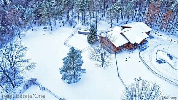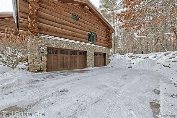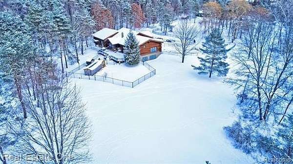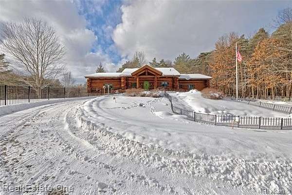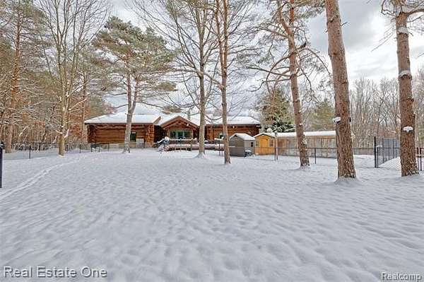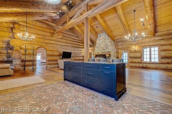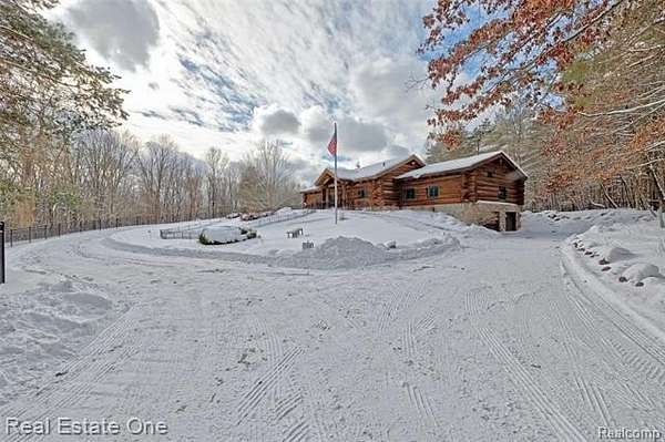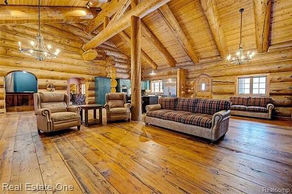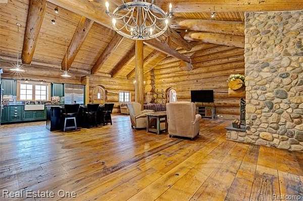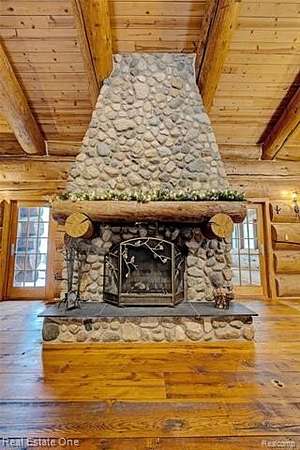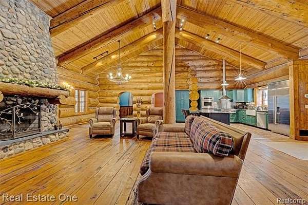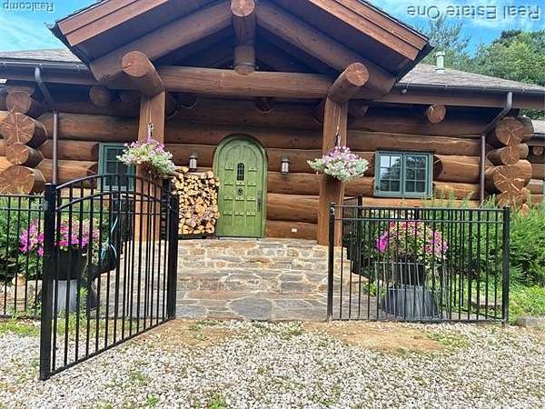 Custom-built log ranch home with over 3,700 sq ft set behind a gated entrance on 20 private acres. Constructed in the 2000s using logs imported from New Mexico, this home showcases true craftsmanship, scale, and materials that are rarely found today. The main living area is anchored by a dramatic floor-to-ceiling stone fireplace and framed by massive beams and warm natural wood throughout. The layout was recently opened up, creating a seamless flow between the kitchen, entry, and great room. The kitchen blends rustic architecture with high-end function, featuring generous prep space, quality appliances, and a large island that connects naturally to the heart of the home. This ranch layout includes 3 bedrooms and 2.1 baths, highlighted by a spacious primary suite designed to feel private and separate. A sunroom just off the main living area leads to an expansive deck overlooking the property. The finished lower level provides additional living space, extensive storage, and two separate wine cellar areas. Outdoors, the setting speaks for itself. Deer are frequent visitors to the front of the property, adding to the peaceful, estate-like feel. The land also includes a charming chicken coop and a large pole barn that has been recently insulated and equipped with heat for year-round use. Additional major features include a slate roof with an approximately 100-year lifespan and a whole-house generator. A rare combination of land, privacy, and architectural presence -- designed for those who appreciate quality, space, and a true connection to the outdoors.