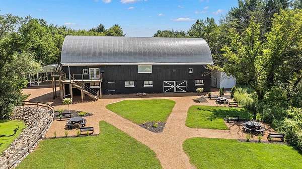 Introducing Mystic Ponds Estate - a premier wedding & event venue on 40 acres! This property features a restored 2-story historic barn with rustic charm & modern amenities, hosting up to 300 guests with ceremony loft, reception hall, full bar, kitchen prep, outdoor bar & silo w/ spiral staircase. Outdoor highlights include a 7-acre pond w/ fountain, pavilion, trails & second stocked pond. Also included are 4 finished day cabins w/ heat & A/C, 150 parking spaces, and strong booking history (100% booked for 2026 & taking 2027 bookings). Though currently a wedding venue, the possibilities for the space are almost endless! Additionally, the property holds a 4BR/3BA, 2,716 sq ft Cape Cod home with in-floor heat, rec room & 3-car garage and adds the opportunity for owner occupancy or rental options. Rare lifestyle & income opportunity!