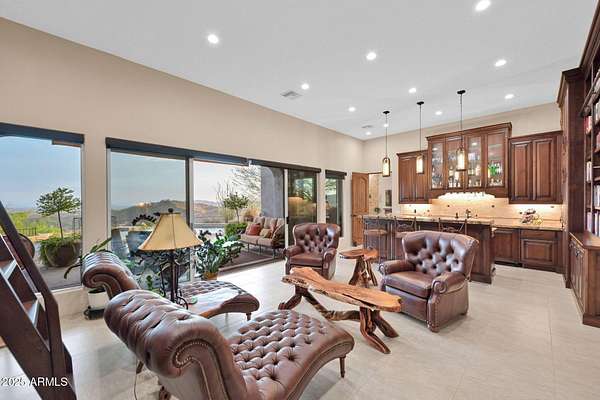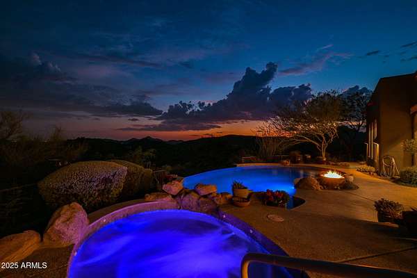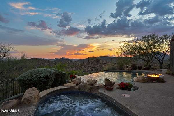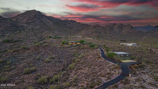 A true collector's dream, this gated Cottonwood Canyon retreat features a 2,050 SF garage designed for 2 RVs or up to 12 cars - a rare find in the Cave Creek luxury market. Perched high in the mountains and blending seamlessly with the desert, the home offers unmatched privacy, endless natural beauty, and dramatic views of sunsets, twinkling city lights, and rugged mountain vistas. Designed for effortless indoor-outdoor living, walls of windows frame the ever-changing scenery while expansive patios and a negative-edge pool create the perfect backdrop for entertaining, stargazing, or quiet desert evenings. Beautifully renovated and impeccably maintained, the home combines timeless design with modern efficiency, including solar power, a backup generator, and quality updates throughout. The open Great room centers around a chef's Kitchen, dining options, aside a stunning Office, and a welcoming Library/Game room with custom bar. 3 en-suite Bedrooms provide privacy for all. Set on 4.5 acres with additional land available, this one-of-a-kind property is surrounded by towering saguaros, abundant wildlife, and the cool elevations of the high desert. Inspiring, functional, and private - this is an extraordinary opportunity in the mountains by Scottsdale, Cave Creek, and Carefree. Please view more of the Quality Features in Documents tab.