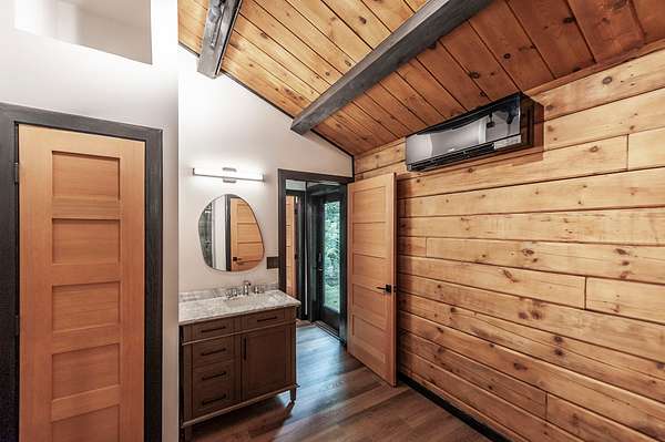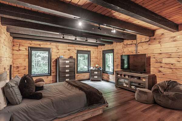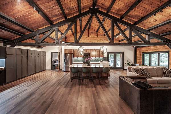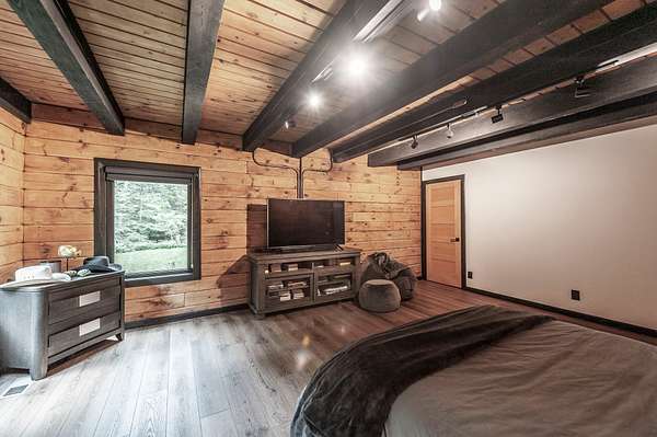 Completely renovated in 2023-2024, this showplace blends refined, modern finishes with the warmth of its natural surroundings. Inside, every detail has been thoughtfully curated--from new luxury waterproof flooring and fresh drywall/paint to beautifully restored interior wood and an original wood-burning stove that anchors the great room.