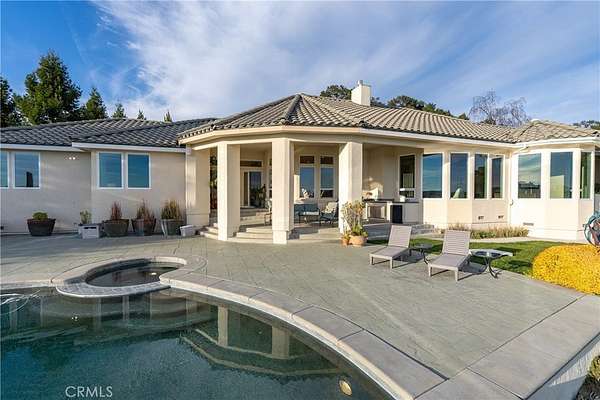 Welcome to Rancho Notso Grande! Nestled high on a hill overlooking the breathtaking Paso Robles countryside, this remarkable 20-acre estate features two homes, offering an ideal setup for multi-generational living or a lucrative investment opportunity. Surrounded by world-class vineyards and located just a short drive from Paso Robles, Templeton, Cayucos, and Cambria, this property blends elegance, functionality, and stunning views.