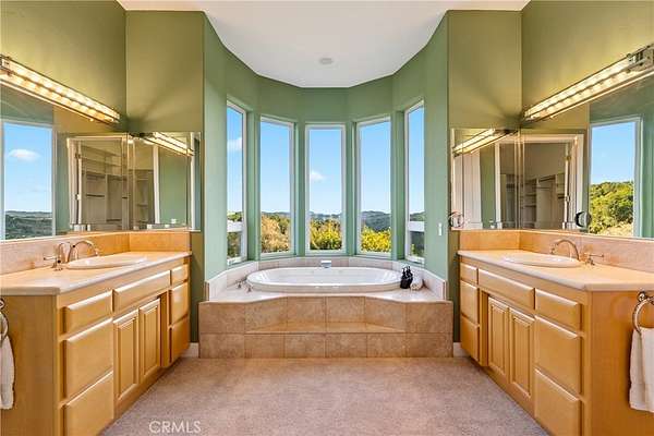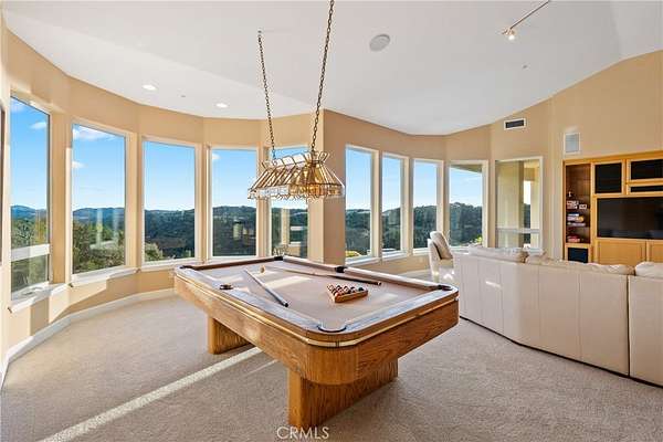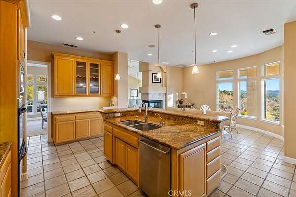 The main home, is a luxurious single-level retreat currently operating as a highly rated AvantStay short-term rental. The open-concept design boasts vaulted ceilings and a welcoming living area centered around a cozy fireplace. Inside, the main living room features large windows that bathe the space in natural light while framing awe-inspiring vistas. The entertainer's dream kitchen includes double ovens, a Dacor warming drawer, custom cabinetry, a walk-in pantry, a temperature-controlled wine room, and a solar tube for added light. The primary suite is a bright sanctuary with a spacious closet, ample natural light, and an en-suite bath featuring a soaking tub and separate shower. Three additional bedrooms offer plenty of accommodations for family or guests. Outside, the expansive patio leads to an infinity pool, a hot tub, and a built-in gas BBQ, where you can unwind and take in the rolling hills and valleys. Solar power and a Tesla battery backup ensure efficiency and reliability.