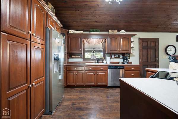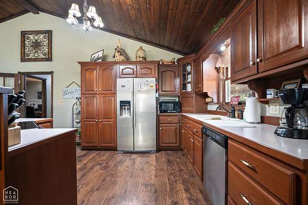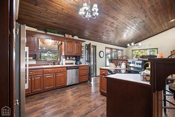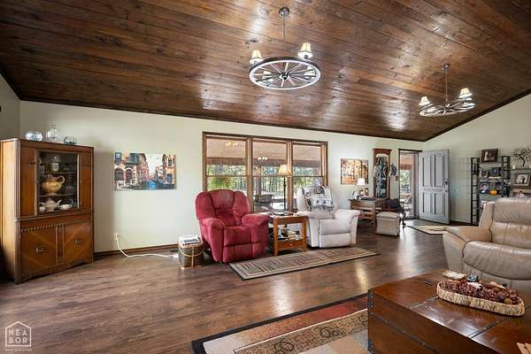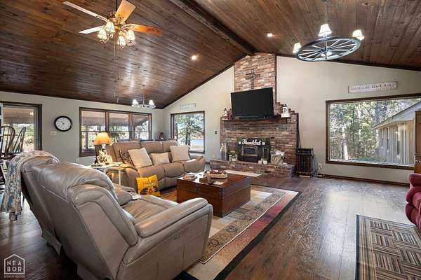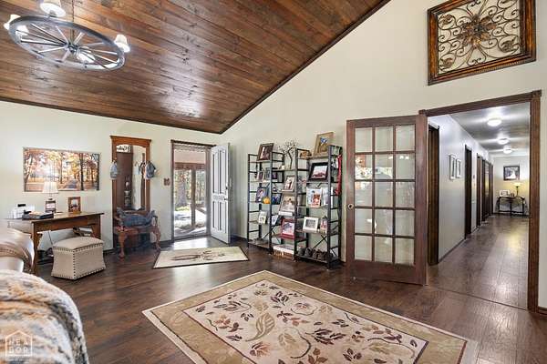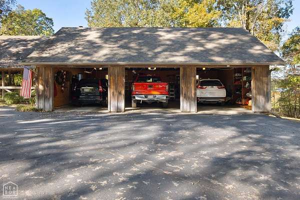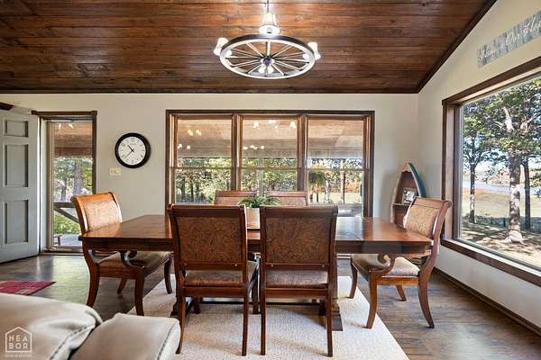 Rustic Cedar Lodge with Gorgeous Lake Views on 8 Acres +/- If you've been dreaming of a quiet place to call home, this beautiful cedar lodge on about 8 acres might be just what you're looking for. Set high above a large watershed lake, this home offers incredible views straight out of a magazine. The home features 5 bedrooms and 3 bathrooms, plenty of space for family and friends, and a full basement with kitchen, living areas, and safe room. The warm, rustic feel carries throughout with natural wood touches, open living spaces, and big windows that bring the outdoors in. Enjoy peaceful mornings in front of the wood burning fireplace or on the large back porch overlooking the lake as the sun sets. The circle driveway makes for easy entry, exit, and plenty of parking. The large 3-car garage gives you plenty of room for vehicles and storage. Just down the paved asphalt drive is a 2-car shop with an office, perfect for projects, a small business, or extra storage. This property is all about space, comfort, and that quiet country feel with just the right touch of rustic charm. This place is made for slowing down and enjoying the view. Sit back, breathe in the fresh air, and watch the lake shimmer below. This is the kind of place that rarely comes to market and you will never want to leave once you make it yours!