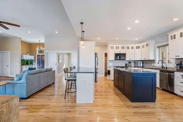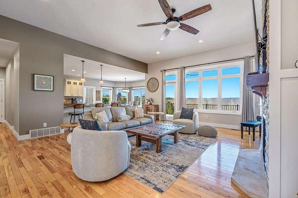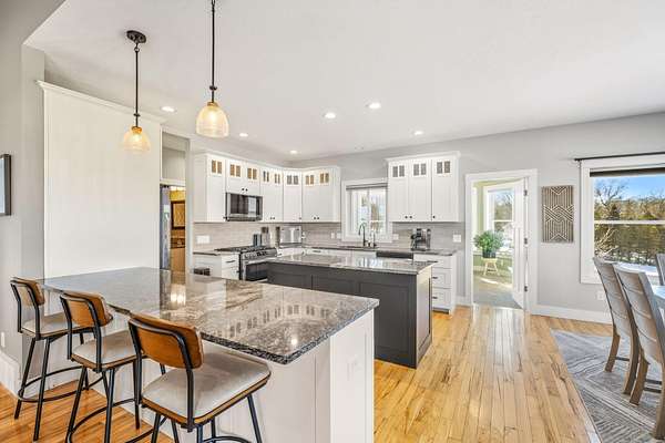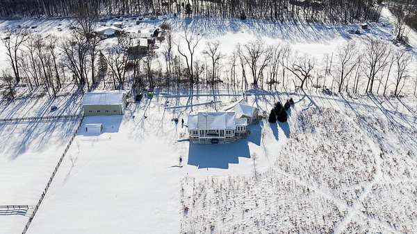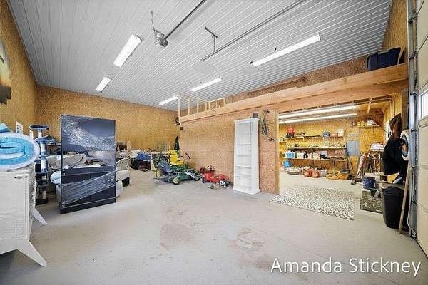 Sweeping northern views, modern finishes, and space to spread out-4343 S Montcalm Avenue offers it all. This 4 bed, 4 bath custom ranch sits on 10.58 acres just minutes from downtown Lowell. Inside you'll find a chef's kitchen with granite counters, double islands, walk-in pantry, and open-concept layout leading to a living area with floor-to-ceiling stone fireplace. The main floor primary suite features dual walk-in closets, sitting area, and deck access. Recently completed major updates including finishing the 3-season room, full bathroom in the lower level, a second full kitchen, and a second laundry space-perfect for guests or multigenerational living. The walkout basement includes recreation space, dining area, and kitchenette, complete with in-floor heat. Outside, enjoy a covered deck, patio, and a massive 50x60 outbuilding with attached 2 stall barn/feed stall. Additional features include central air, radiant heat, full house generator and high-speed internet available