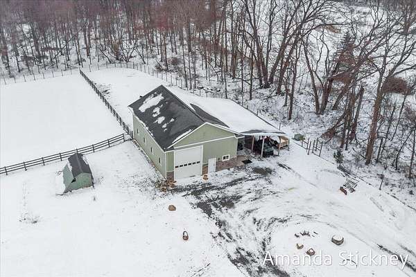 Custom ranch on 10+ acres in Lowell, MI with sweeping views, luxury finishes, and multigenerational living potential. This 4 bed, 4 bath home features an open floor plan, chef's kitchen with granite countertops, large island and snack bar, walk-in pantry, and a living room with a floor-to-ceiling stone fireplace. The main floor primary suite includes dual walk-in closets, sitting area, and private deck access. The finished walkout basement offers a second kitchen, full bath, second laundry, recreation space, and in-floor radiant heat--ideal for guests or in-law suite. Enjoy outdoor living with a covered deck, patio, and scenic acreage. 50x60 pole barn with attached stalls perfect for hobby farm or storage. Additional features include central air, whole house generator, and high-speed internet. Minutes to downtown Lowell and an easy commute to Grand Rapids.