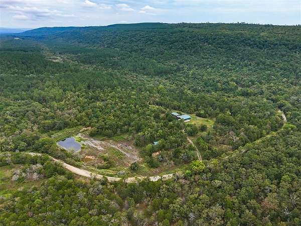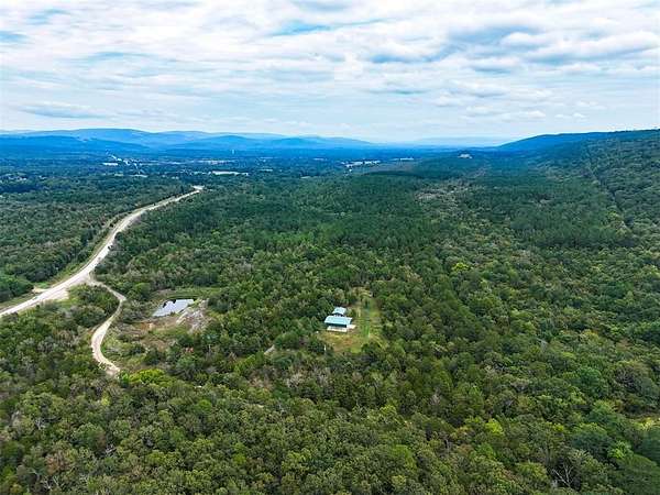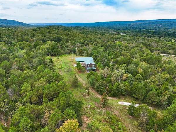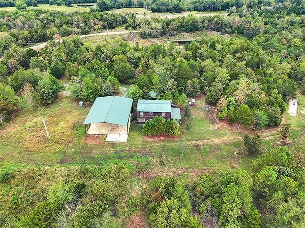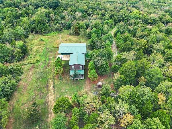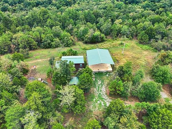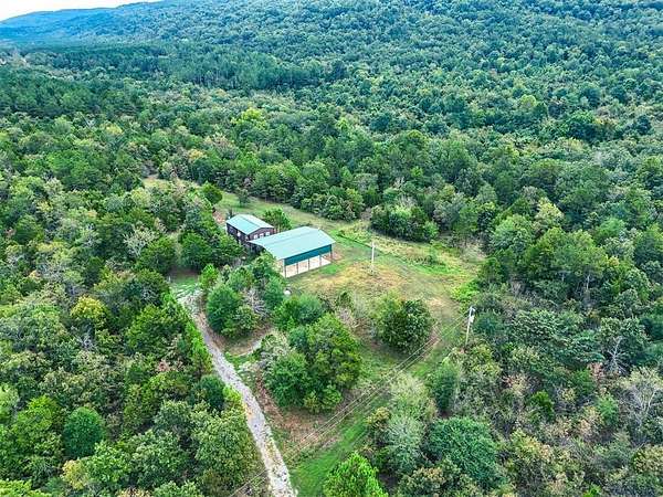 50 acres in beautiful Oklahoma that has been improved and ready for adventure! 1000+ sq ft fully furnished home with full kitchen, island open floorplan, 2 bedrooms with flexible space for additional 3rd bedroom or secondary living, 1.5 Baths. Dual porches with a screened porch on the front and covered porch on the back to relax and enjoy the views this property offers. Impressive 40X40 pavilion with 50x50 roof perfect for parking all your recreational toys or RV with separate utilities. 12x12 storage building. Park like 20x20 pavilion overlooking the pond. Remarkable property with abundant wildlife including mule deer and much more! Trails for ATV or hiking. Additional concrete pad perfect for a storage container or additional outdoor living space. Enjoy all Honobia Creek has to offer total 47.8 Acres. Room to expand! Great homestead, recreational property or short term rental. Stunning land and impressive topography that is a rare find.