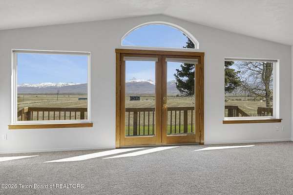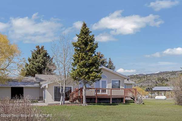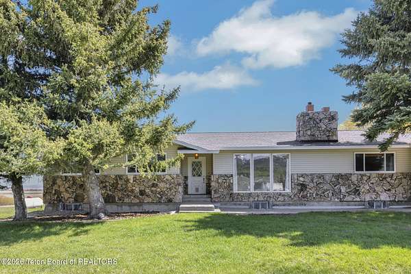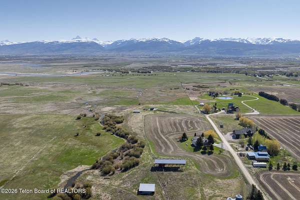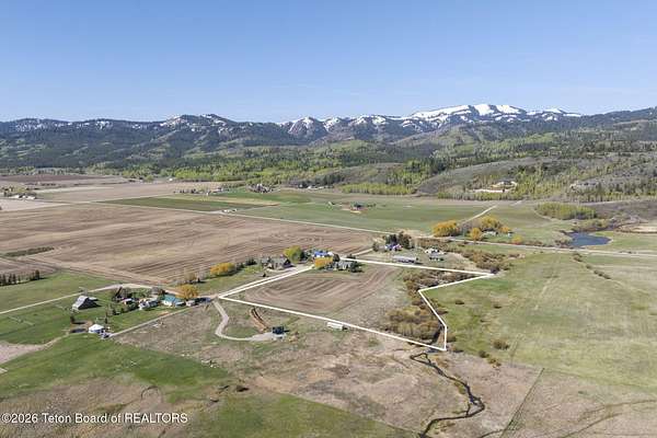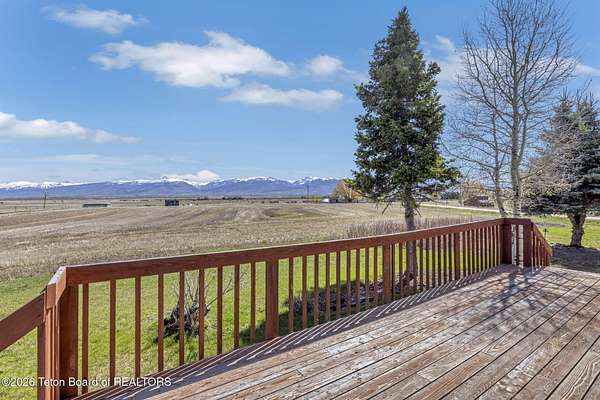 Set against the backdrop of the Teton Range and Teton River to the West, this 6 bedroom home sits on almost 7 acres with no HOA or CCR's. The interior comprises over 4,500 square feet and features a separate exterior entrance to the lower level, ideal for a separate rental or MIL space. Paradise Creek flows year round through the northern portion of the property, providing valuable wildlife habitat for big game, shorebirds, and waterfowl. Hundreds of acres to the East are protected by conservation easements, and the property also features valuable water rights and the ability to have horses. Teton Valley Lodge is located up the road, and just a few properties away is the Fox Creek West access site, providing public access to the Teton River. Short-term rentals allowed.