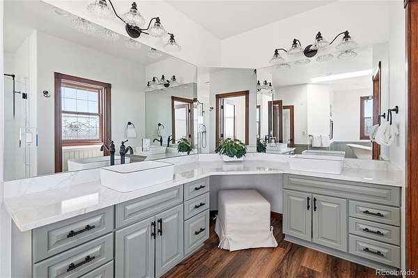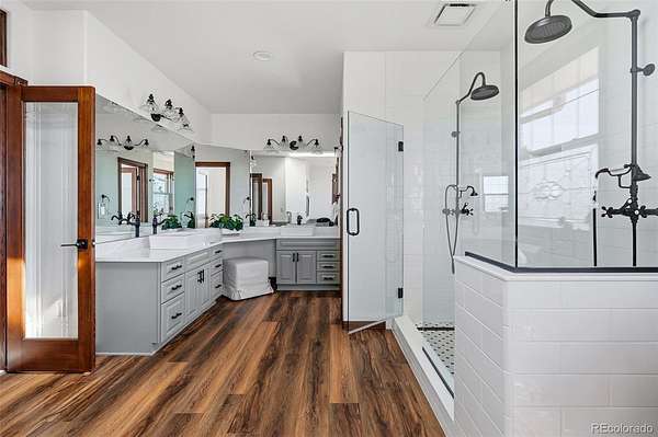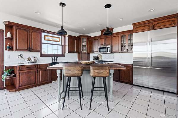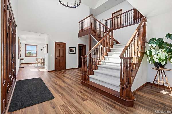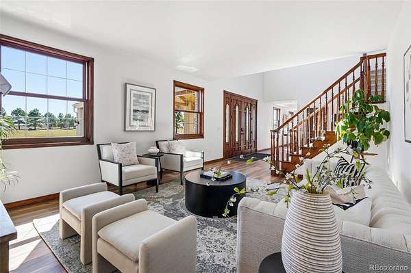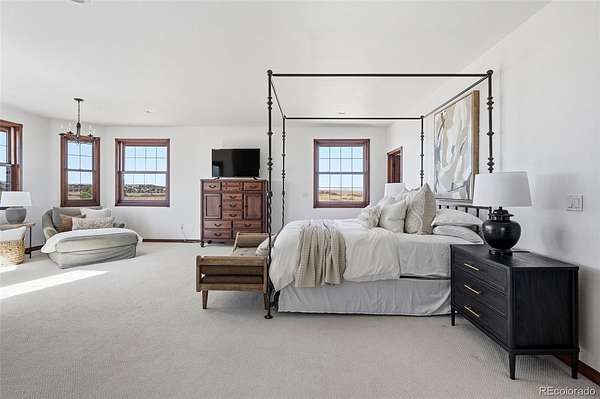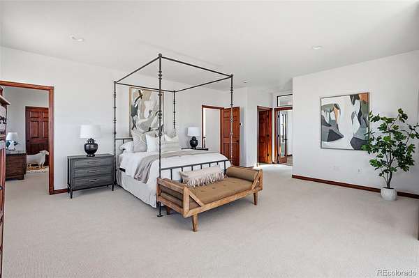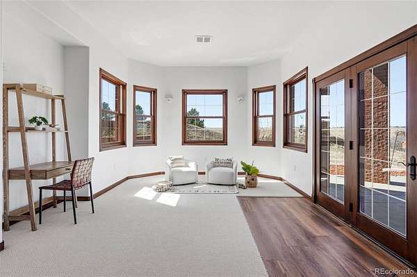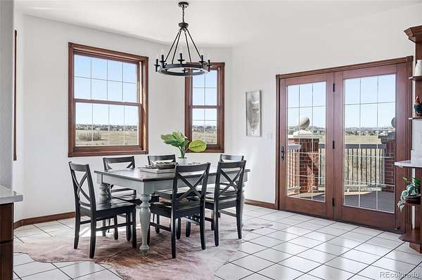 Set on 33.5 acres with sweeping panoramic views, this nearly 7,000 sq ft estate offers a rare blend of privacy, usable land, and everyday convenience—just five minutes from Target, grocery stores, and amenities in Castle Rock.