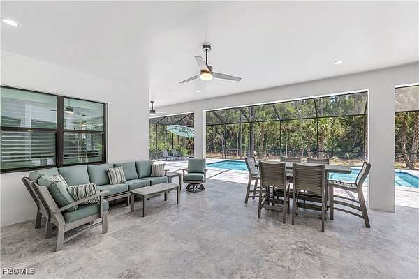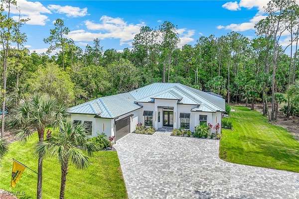 Escape to your own private paradise nestled within the picturesque landscape of Golden Gate Estates. Situated on 2.73 sprawling acres of lush greenery, this custom-built 3 bedroom + flex room (den, small office, home gym), 3 bathroom pool home offers a rare opportunity to embrace the tranquility of rural living while enjoying the comforts of modern luxury. As you drive along the large custom pavered driveway, anticipation builds for the retreat that awaits. Once you step inside you will be captivated by the impeccable craftsmanship and attention to detail that define every corner of this remarkable home. Soaring ceilings with reverse soffits and cove lighting, whole house generator, 500 gallon propane tank, expansive impact windows and doors, metal roof, spray foam insulation, linear a/c vents. and thoughtfully curated finishes create an ambiance of refined charm and inviting warmth throughout. The heart of the home lies in the gourmet kitchen, where culinary dreams come to life amidst state-of-the-art appliances, custom cabinetry, and quartz countertops. Share meals with loved ones in the adjacent dining area or gather around the spacious great room for cozy evenings spent in good company. Retreat to the sumptuous master suite, a sanctuary of serenity boasting a luxurious ensuite bath, walk-in closet, dual shower and soaking tub. Additional bedrooms offer comfort and versatility, ideal for accommodating guests or creating a home office or fitness studio to suit your lifestyle. Outside, the possibilities are endless on your expansive acreage. Spend leisurely afternoons lounging by the custom oversized 15 X 35 shimmering pool, hosting gatherings on the covered patio with outdoor kitchen or exploring the lush grounds that surround you. With plenty of space for gardening or simply enjoying the peace and quiet of nature, this property invites you to embrace the joys of country living to the fullest. Located just moments from the vibrant attractions of Naples and pristine beaches of Southwest Florida, this custom home in Golden Gate Estates offers the perfect blend of seclusion and convenience. Whether you seek a tranquil retreat, or an active lifestyle surrounded by nature, seize the opportunity to make this secluded sanctuary your own. Don't miss your chance to experience the beauty and serenity of life on acreage in Golden Gate Estates.