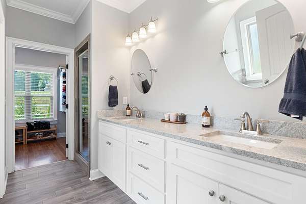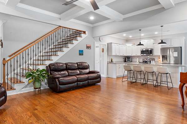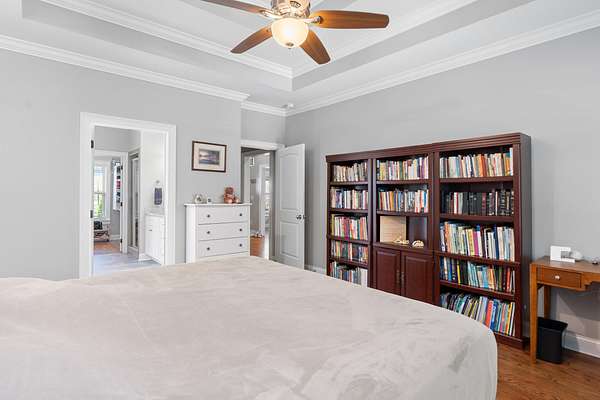 - Breakfast Room, Ceiling Fan(s), Coffered Ceiling(s), Crown Molding, Double Vanity, Eat-In Kitchen, En Suite, Entrance Foyer, Granite Counters, High Ceilings, Open Floorplan, Pantry, Primary Downstairs, Separate Dining Room, Separate Shower, Tray Ceiling(s), Walk-In Closet(s), Whirlpool Tub