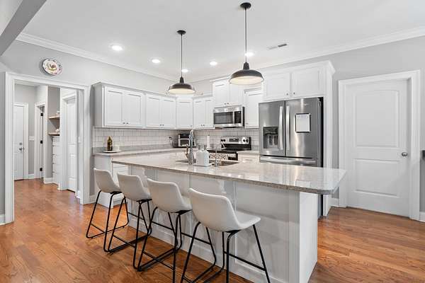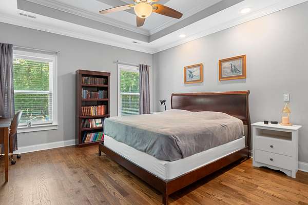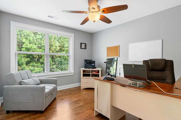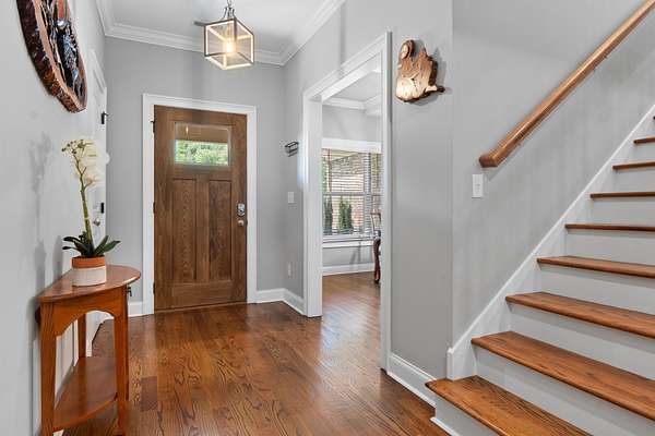 Experience refined living in this like-new estate, gracefully set on nearly two acres with a private backyard oasis. Thoughtfully designed with timeless elegance, the home showcases rich hardwood flooring, an expansive dining room ideal for hosting, and a stunning living area featuring a stone fireplace, coffered ceilings, and serene views of the pool. The gourmet kitchen is both stylish and functional, appointed with granite countertops, stainless steel appliances, a walk-in pantry, and abundant custom cabinetry. The main-level primary suite offers a true retreat with tray ceilings, a spa-inspired bath complete with a tiled walk-in shower, soaking tub, dual vanities, and an oversized walk-in closet. Upstairs, you'll find three additional bedrooms--or flexible bonus spaces--along with two full baths and generous storage throughout. Step outside to enjoy the covered deck overlooking a beautifully maintained, fully fenced backyard with an in-ground pool and a peaceful creek setting. A spacious tandem garage easily accommodates boats, ATVs, and more, while still providing room for two vehicles. Conveniently located just minutes from Ringgold and East Brainerd's newest Publix, this exceptional property offers the perfect blend of privacy, luxury, and accessibility.