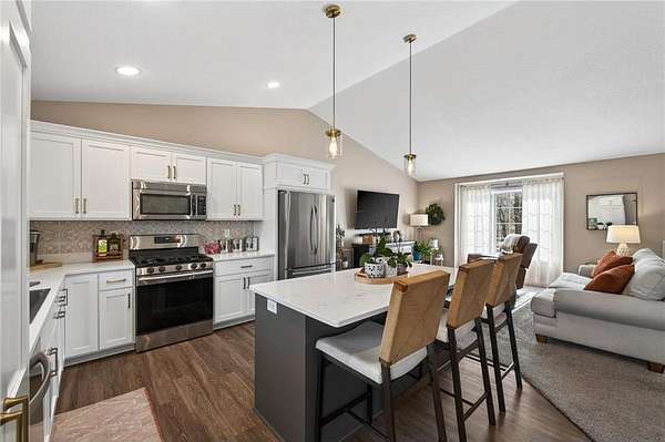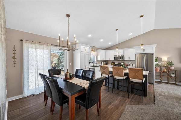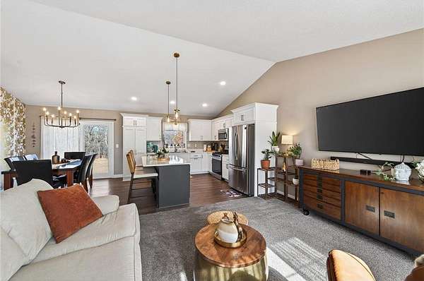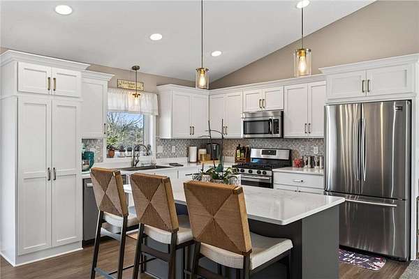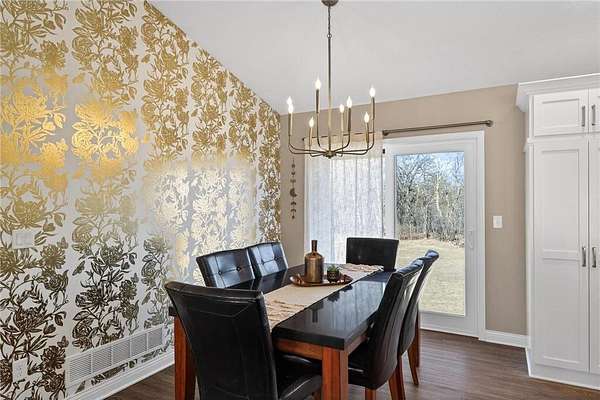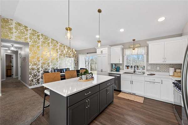 A one-of-a-kind home in beautiful Oak Grove set on 1.73 acres with mature trees and open space, showcasing pride of ownership throughout. The main level features a bright, open layout with a spacious living room, dining area, and a stunning kitchen with white cabinetry, stainless steel appliances, and a center island perfect for entertaining. This level also includes three bedrooms, highlighted by a private primary suite with a walk-in closet and spacious bathroom, along with a welcoming foyer featuring high ceilings and great storage. The fully finished lower level offers a warm and inviting family room with walkout access to a large concrete patio, a generous laundry room, and two additional bedrooms, bringing the home to five bedrooms total. Additional highlights include a heated and insulated attached 3-car garage, extra-wide concrete driveway, and a whole-house water filtration system. The outdoor features make this property truly exceptional, including a 30×40 heated pole barn within-floor heat, floor drains, epoxy floors, and a wood-burning stove, plus a 12×24 lean-to with a concrete patio. An additional 200 sq ft shed provides plenty of extra storage for lawn equipment and tools, making this property perfect for vehicles, hobbies, or workshop space.