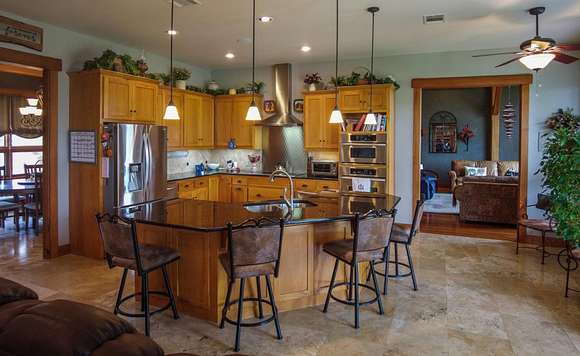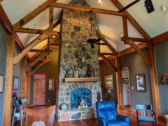 The centerpiece of the property is a thoughtfully designed 3,519 sq ft custom home, perched atop a hill to provide breathtaking views of the land and the wildlife that calls it home. The main residence features 3 spacious bedrooms, 2.5 baths, and a large 3-car detached garage with a finished bonus room above--perfect for an office, studio, or additional guest space. Inside, the home exudes warmth and character with reclaimed longleaf pine flooring, travertine tile, and exposed timber beams that create a rustic yet refined atmosphere. The chef-inspired kitchen boasts custom cabinetry, granite countertops, and top-tier finishes, making it the ideal space for both cooking and entertaining.