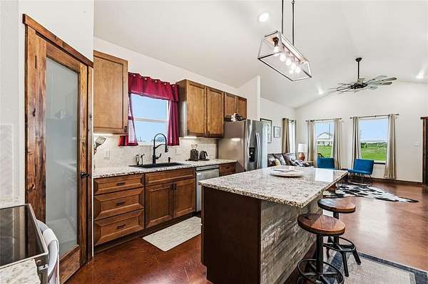 There’s something special about finding a place where life can slow down just enough to enjoy it and this beautiful 14 acre property offers exactly that. Tucked into peaceful country surroundings, this move-in ready 3 bedroom, 2 bath barndominium blends comfort, practicality, and opportunity. Inside, you’ll find a thoughtfully designed space with granite countertops, a kitchen island perfect for gathering, and an easy, livable layout that feels like home from the moment you walk in. The insulated garage workshop adds incredible flexibility, ideal for projects, storage, or simply having the extra space so many buyers are searching for. There’s also a detached storage building and a generator hookup already in place, offering peace of mind and everyday convenience.