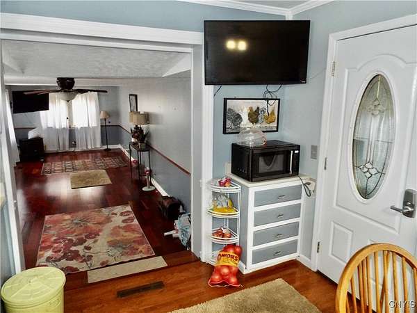 Discover the perfect blend of space, comfort, and country charm in this expansive 4-bedroom, 2-bath ranch situated on 3 picturesque acres! Beautiful flower gardens with vibrant seasonal blooms compliment the scenic views and wildlife (including bald eagles!) Peaceful rural setting with the option for a 5th bedroom, home office, or flex space, this property offers incredible versatility for any lifestyle. Featuring large rooms throughout, plus a 3-season porch full of windows, and a mostly finished basement with outside entry. The spacious floor plan also features a bright, open living area ideal for gatherings, a large eat-in kitchen with ample cabinetry and counter space, and generously sized bedrooms for everyone to enjoy. Recent updates provide modern comfort while preserving the home's welcoming, rural character. Outside, you'll find plenty of room to roam, garden, or simply relax and take in the scenic views. The small barn offers endless possibilities-perfect for horses, small livestock, or hobby farming. Whether you dream of country living, a mini homestead, a Bed & Breakfast or Airbnb Investment, this property has it all. Located directly on the main snowmobile and ATV trails, and just 10 minutes from the renowned Salmon River-home to some of the best salmon fishing in the East-this property is a dream for outdoor enthusiasts. Whether you're looking for a peaceful retreat or a unique income-generating opportunity, this home offers endless possibilities. Don't miss this rare opportunity!