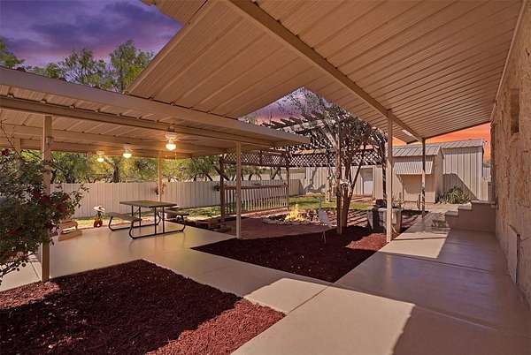 - Covered Patio/Porch, Fence, Fire Pit, Lighting