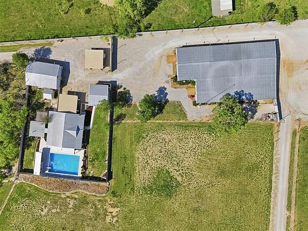 8 Acres • Ag Exemption • 8,000 Square Foot Warehouse. Exceptional multi-purpose property that combines residential luxury with extensive agricultural and business facilities. This unique property features an 8,000+ square foot, fully encapsulated warehouse equipped with heating and HVAC, multiple roll-up doors for large vehicles, three restrooms, and dedicated office space. The grounds are reinforced with 4 inch thick caliche rock from fence to fence and include LED lighting for easy nighttime navigation. The entire acreage is perimeter-fenced and cross-fenced for livestock. It features natural grasses, a water tank, and multiple water sources throughout the property. A private well serves as the primary water source, eliminating monthly water bills. The Austin stone residence offers a metal roof and a private, gated entrance for complete privacy. The outdoor living area includes a swimming pool, cabana, and multiple patios designed for entertaining. Additional structures include a 1,200 square foot shop with a 3-ton HVAC unit and a second shop suitable for a variety of uses. With ample space to build an additional residence, this property is also ideal for multi-generational living. This property has been meticulously maintained and truly must be seen to appreciate the endless possibilities it offers. • Video available upon reques •
