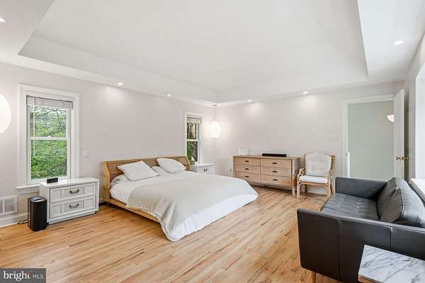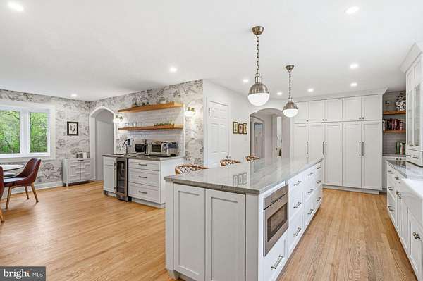 Welcome to this sun-filled, beautifully renovated residence set within the highly coveted Leopard Lakes community with access to 11 acres of space surrounding a lake and private beach, offering swimming, kayaking, tennis or pickleball courts, a recently installed playground and private views from the walking path bordering the lake. Seize this rare opportunity to enjoy this exceptional home offering both lake and creek views in a breathtaking setting. The current owners have spared no expense in transforming, expanding and upgrading this home with a bright open floor plan set on 1.5+ spectacular acres with specimen plantings and serene views at every turn. Exterior features include a stone-walled front courtyard, Belgian block-lined driveway, brick paths, private deck, sprinkler system, freshly painted exterior and full house generator. The welcoming double doors with beveled glass open into a spacious entry foyer with open views of the sun-filled living and dining rooms, perfectly refinished and new light oak floors throughout the entire house, breakfast room and access to the other first floor living spaces including a spacious office with built-ins and fireplace, fabulous new expanded gourmet kitchen with white custom Century cabinets with pull-outs, quartzite countertops, a service bar area, Thermador gas range with steam and convection ovens, bright breakfast room, adjacent family room with vaulted, beamed ceiling, wood burning fireplace and access to the rear deck and grounds, inviting sun room with vaulted ceiling, beam detail and access to the rear deck and backyard, a mud room/laundry room with plenty of closet and storage space and a beautifully renovated powder room. Two staircases leas you up to the spacious second level which features an incredible primary suite owners' magnificent retreat featuring a large bedroom with tray ceiling, cedar-lined window seat overlooking the back yard, elegant marble bathroom with dual vanities, spacious shower, soaking tub and private water closet, dual walk-in closets with pocket doors, outfitted by California Closets, two additional bedrooms that share a renovated hall bathroom and a fourth bedroom with a walk-in closet and renovated ensuite bathroom. The lower level has also been partially finished by the current owners and offers a playroom/ gym space, a fully conditioned wine room and lots of storage. Additional features include freshly painted neutral decor, modern architectural designs, custom moldings, newer Marvin windows, custom lighting, oversized 3-car garage with Tesla car charger and a whole house generator. Welcome home but feel like you're on vacation every day with the view of the lake, while hiking on the trails and listening to the babble of the flowing water, relaxing on the beach or taking your kids or grandkids to the new playground. The lake and grounds are owned by Leopard Lakes Farm, Inc. Buyers pay this corporation a one-time transfer fee of $10,000 at settlement and annual dues of $2,659 per household. Just minutes from renowned public and private schools, endless recreational opportunities, clubs, shopping, restaurants and more.