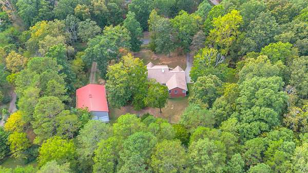 Est $4,476/mo- Custom Full Brick Home with Separate Living Quarters on 1.75 Acres -Discover this beautifully maintained custom-built full brick home, perfectly situated on 1.75 private, wildlife-filled acres. Offering separate living quarters and an abundance of storage, this property is ideal for multi-generational living or those who value space and versatility. -Step inside to find a spacious layout featuring a large primary suite with a walk-in closet and en-suite bathroom. All three main-level bedrooms include walk-in closets, providing ample storage throughout. A dedicated office/den sits just off the foyer, along with a formal dining area perfect for gatherings. -The heart of the home features a vaulted living room ceiling with a stacked stone gas fireplace, oak hardwood flooring, and a spacious kitchen with generous cabinetry and prep space. A large main-level laundry room includes folding tables, cabinets, and a utility sink for added convenience. -Additional highlights include: Newer roof and HVAC system Two gas fireplaces (living room & lower level) 40'x60' detached garage/shop with electricity, water, and pull-through garage doors for easy access Double car garage on main level Double driveway with private entrance to basement living quarters Storm shelter with Basement garage and additional storage With separate entrances and the potential for in-law or rental suite accommodations, this home offers flexibility and function in a serene, natural setting.