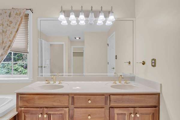 - Bathroom Mirror(s), Ceiling Fan(s), Crown Molding, Double Closets, Double Vanity, Eat-In Kitchen, Granite Counters, High Speed Internet, Open Floorplan, Pantry, Primary Downstairs, Soaking Tub, Split Bedrooms, Walk-In Closet(s), Walk-In Shower
