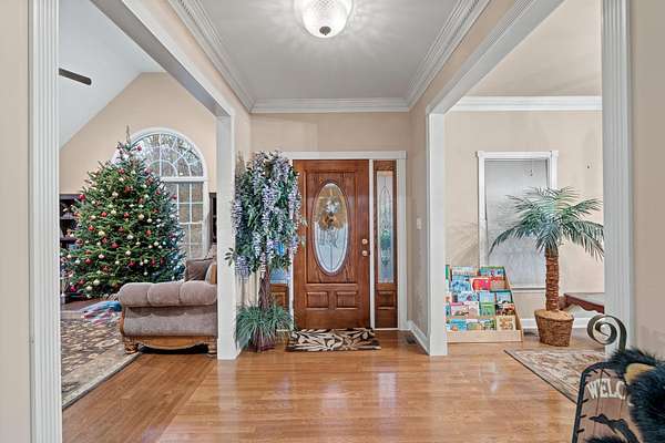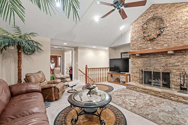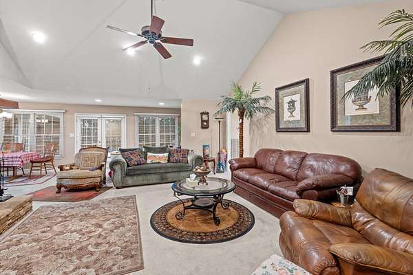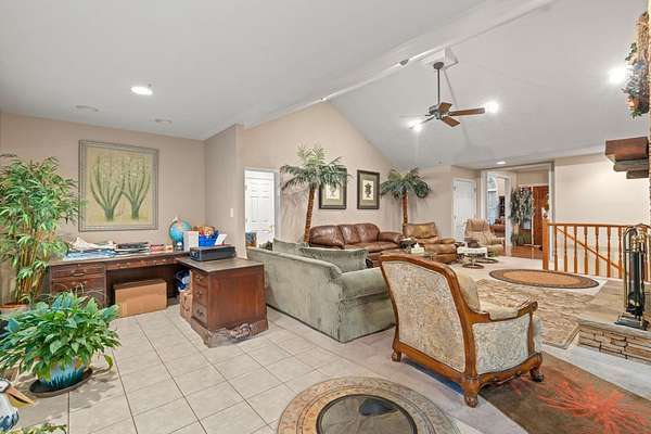 Discover the perfect blend of luxury, space, and functionality in this beautiful custom-built brick ranch that is situated on 1.75 private acres in the desirable Royal Oaks community. The nearly 4,800 square feet of living space is characterized by high-end finishes and an abundance of natural light. The heart of the home is a vaulted living room featuring warm oak hardwood flooring and a stunning stacked stone gas fireplace in the informal living room. The gourmet kitchen serves as a central hub, equipped with beautiful countertops, generous cabinetry, a double oven, and a large industrial refrigerator for seamless hosting. The main-level primary suite offers walk-in closets and a spa-like en-suite bathroom complete with a soaking tub and walk-in shower. Every bedroom on the main level includes a walk-in closets, ensuring ample storage for everyone. Additionally, a dedicated office and a formal dining room provide the perfect balance of work-from-home capability and elegant entertaining space. The fully finished walk-out basement serves as a complete second living quarters, making it ideal for in-laws or guests. This level features its own private entrance and driveway, a second gas fireplace, a cozy den, a bonus room, and an additional office. For added safety, the home is equipped with a built-in storm shelter. For those with hobbies or a business, the exterior features are unmatched. The property includes a massive 40'x60' detached shop with electricity, water, and pull-through garage doors for effortless access. Beyond the three-car attached garage, the double driveway offers plenty of space for RV or boat parking.