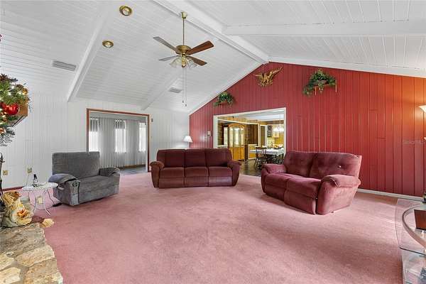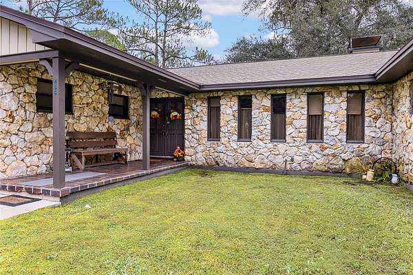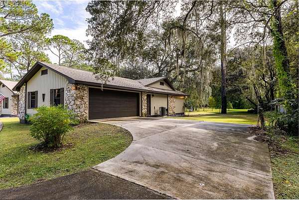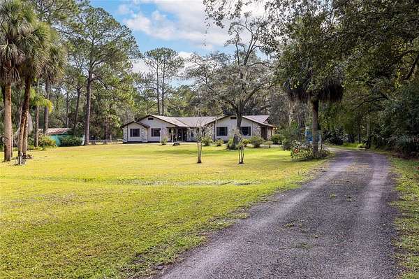 Explore this incredible opportunity to reside in SEMINOLE ESTATES, an EQUESTRIAN community of five-acre properties tucked away along Black Bear Wilderness Preserve, where multi-million dollar estates call home. This charming 3-bedroom, 2-bath home sits on 5 beautiful acres zoned for horses, offering the perfect blend of privacy and convenience. Set back from the road, a long driveway leads to your peaceful retreat.