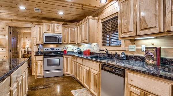 Escape to Broken Bow to enjoy the luxurious surroundings of Safe Haven Cabin! Conveniently located in Kaniatobe Trails West development, this open floor plan offers a warm and inviting atmosphere with plenty of space for everyone to gather or relax. Head into the gourmet kitchen where you'll find tons of custom cabinet storage space, stainless appliances, an over-sized granite island and a large space for your favorite dining table. There are three generous bedrooms on the first floor, providing ample arrangement options. There is a full bath upstairs, ideal for a home office, flex space or even an additional sleeping area. The massive covered porch area creates the perfect space to kick back, relax, & enjoy the sights & sounds of nature all around you. This property is located minutes away from the local attractions of Hochatown, Broken Bow Lake and Beavers Bend State Park. Don't miss out on this opportunity to own your own slice of paradise in Broken Bow!
