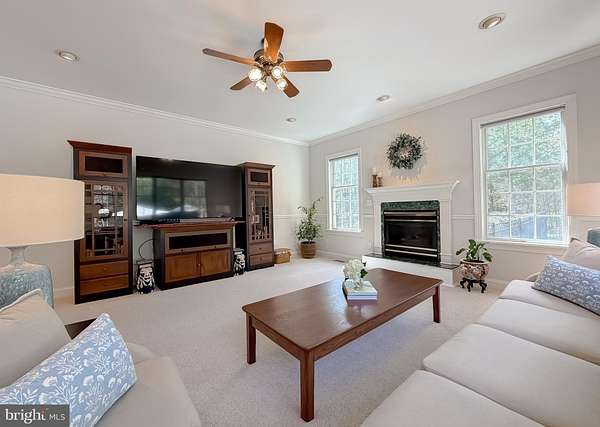 - Breakfast Area, Carpet, Ceiling Fan(s), Crown Moldings, Family Room Off Kitchen, Formal/Separate Dining Room, Island Kitchen, Open Floor Plan, Pantry, Primary Bath(s), Soaking Tub Bathroom, Stall Shower Bathroom, Table Space Kitchen, Tub Shower Bathroom, Walk-In Closet(s), Window Treatments, Wood Floors
