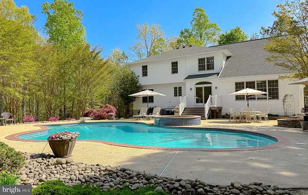 Welcome home to this one-of-a-kind retreat in Leonardtown, where privacy, space, and thoughtful craftsmanship come together on over 3.5 gorgeous acres. Tucked away on a peaceful cul-de-sac and backing to beautiful trees, this lovingly maintained one-owner home is the kind of property that truly checks every box. And with the care that has gone into every detail over the years, it barely looks lived in. Built by Jeff Errington with quality 2x6 construction and Anderson windows and doors, the home offers 4 bedrooms, 2.5 baths, and a fantastic classic layout that just feels right the moment you walk in. The main floor is thoughtfully designed with a huge family room, a private office with French doors, a formal dining room large enough to seat 10, and a convenient mudroom and laundry room that keeps everyday life running smoothly. The kitchen is an absolute dream for anyone who loves to cook, featuring a 48-inch, 6-burner gas cooktop with griddle, double wall ovens, Craftmade cherry cabinets, a generous pantry, and plenty of room to gather. Freshly painted throughout and finished with crown moulding, upgraded trim, and Casablanca ceiling fans, the home feels bright, polished, and completely move-in ready. The owners suite is a true retreat , complete with a sitting room perfect for a home office, library, or a quiet reading nook. The ensuite bath is spa-worthy, featuring dual vanities, a marble surround soaking tub, and a separate shower. The walk-out basement offers tremendous potential with a bath rough-in already in place, giving you a head start on finishing the space exactly the way you want it. The backyard is where memories are made. A gorgeous Sylvan gunite pool and hot tub, both heated by a dedicated 500-gallon propane tank, means your pool is never cold and the fun never stops in spring, summer, fall, or winter. Dive right in from the diving board, then kick back while in-ground poolside speakers set the perfect mood for entertaining or unwinding. The pool has been freshly updated with a brand new heater, new filter, and new skimmers, and is beautifully enclosed by a 6-foot wrought iron fence for both safety and style. Beyond the pool, the outdoor fun continues with a dedicated gravel area for horseshoes and cornhole, plus a golf chipping and practice swing area for the golfer in the family. The extensive hardscape and lush, thoughtfully designed landscaping, including stunning Japanese maples, cherry trees, and crepe myrtles, provide beauty across every season. A separate shed keeps all your lawn equipment neatly tucked away and your garage clutter-free. Big-ticket items like the roof (under 5 years old) and two newer HVAC units mean you can simply move in and live worry-free. 15 minutes to Leonardtown and PAX River Naval air station. A fantastic walkable neighborhood with private lots and well cared for homes! Homes like this don't come around often, so come see it for yourself.