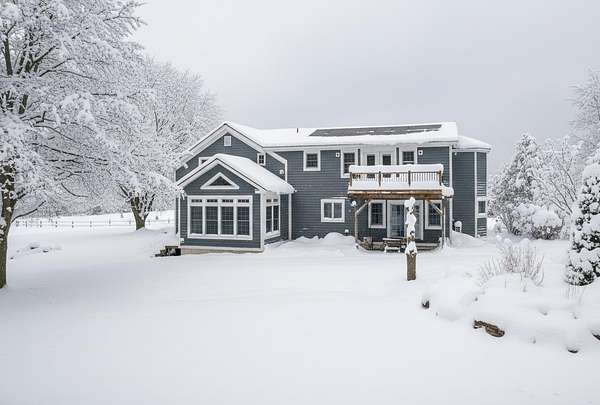 Welcome To 4351 Crown Point Road in the Town of Bridport. This West Addison County gem offers buyers the best of both worlds - a home consisting of an 1850s farmhouse retaining all of those well-loved period features, as well as a large modern 1990s contemporary addition. This ensures just the right blend of charm and updated conveniences, for the everyday modern lifestyle. Boasting in excess of 3700 SQFT of finished living space, the 1st floor offers the right balance of open spaces and separation including an office, living room, family room, sunroom, & convenient 1/2 bath. Upstairs you'll find 4 bedrooms plus a 5th bonus room, all are of a good proportion. The primary bedroom suite has vaulted ceilings, its own bathroom as well as a spacious balcony - ideal for relaxing on and savoring those southwesterly views! The addition was architecturally designed to house space for a spiral staircase leading from the bedroom hallway directly into the family room, this final step awaits the next family to complete when time and focus allows! All the important aspects of the house have been taken care of, from the solid standing seam roof to the immaculate siding and trim work. The modern heating & cooling systems include 4 zones, radiant heat in the majority of the 1st floor, 4 AC heat pumps, and the major benefit of (owned) solar panels. Outside enjoy 4 magical acres. Peaceful setting, yet located close to Middlebury, Addison Central School District, & easy access to NY.