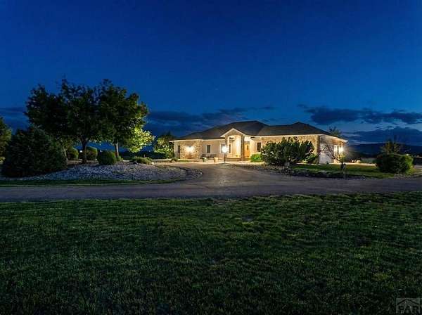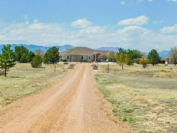 Luxurious 5 bedroom 5 bathroom custom built home by Drawing Room with gorgeous views, views, and more views of the Spanish Peaks, Greenhorn Mountains. Pikes Peak, and yes a beach (stem beach). Almost 6,000 finished square feet. Feels like home as you walk into the beautiful foyer with marble flooring. The home opens up to a formal dining room, office and kitchen with granite countertops. Did you say entertainment? Culinary paradise with ovens gas cooktop pantry and custom built cherry cupboards. Bedrooms with adjoining bathroom and sinks in the bedrooms. 5 piece bathroom, 2-way gas fireplace with the main bedroom and walk-in closet. Did I mention entertainment? Down stairs has a library, wet bar, game room, living room, 2 bedrooms, 2 bathrooms, utility room, gym with wall to wall mirrors, and after the workout enjoy the dry sauna, tanning bed, or shower. Need more entertainment? Enjoy the theater room with huge projector screen, projector, and sound system. Elegant wet bar with granite countertop fridge, dishwasher, and custom wine/whiskey cabinets. 3 car attached garage with 11 1/2 foot ceiling. 3 car detached garage that has work shop and storage. Home sits on 40 acres with 10 to 15 acres fenced with electric fence. Over 35 mature trees. Main level laundry with 2 washers and 2 dryers. Main level and basement level have separate furnaces. Two electric meters. Beautiful outdoor lighting, pond with waterfall. Furniture can be negotiated to stay with the home.