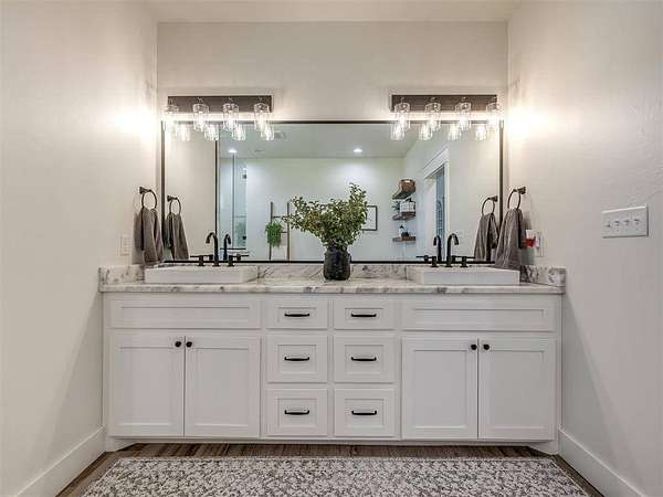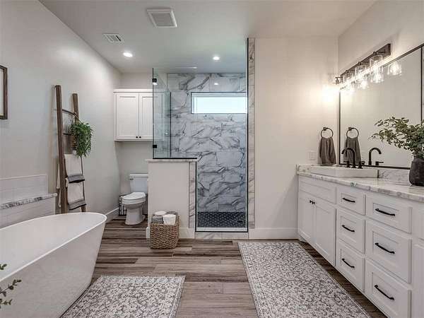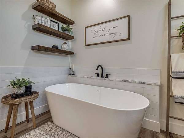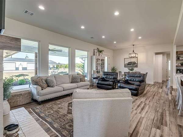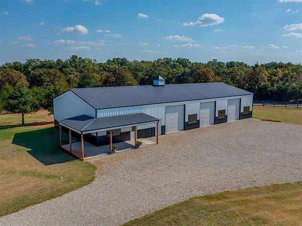 Sellers are offering $2,000 towards buyer closing costs! Modern 2022 home on 6.66 acres with 2 large shops, pool, pond, and guest quarters. Discover a rare blend of luxury and utility in Shawnee, located in the sought-after Grove School District. This 3-bed, 2-bath home offers 2,159 sq ft of open-concept living with a covered patio and high-end finishes throughout, including 3cm leathered marble countertops in the kitchen and baths. The professionally landscaped acreage features a serene pond, custom firepit, and an above-ground pool perfectly positioned for both sun and privacy. Enjoy the peaceful, rural feel while still being conveniently close to town, shopping, and I-40 access. The property includes two premium shops: Shop 1 is 45x100' with 14' sidewalls, three 10x12' insulated garage doors, and plumbing stubbed into the slab for a future bathroom. Shop 2 is 40x70', fully insulated with two 8x10' overhead doors and includes a 40x50' workspace plus a 20x40' fully finished guest quarters with granite kitchen, full bath, laundry, and mini-split HVAC, ideal for hobbies, extended stays, or rental income. Every inch of this property is thoughtfully designed for comfort, functionality, and long-term value. Whether you're running a business, storing equipment, or simply enjoying wide-open space, this one is built to perform. For more details or to schedule a showing, contact the listing agent.