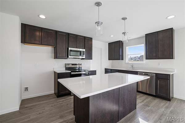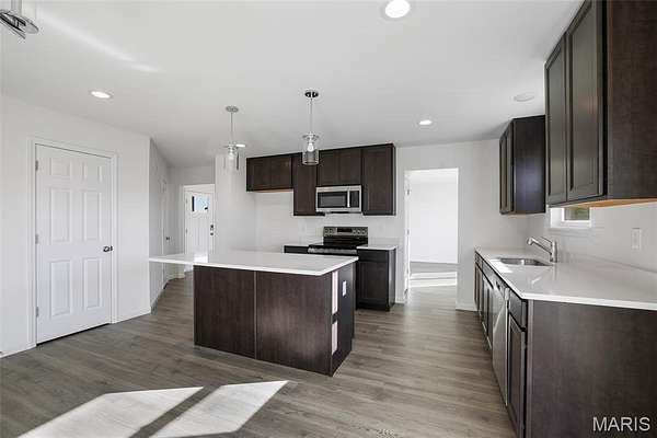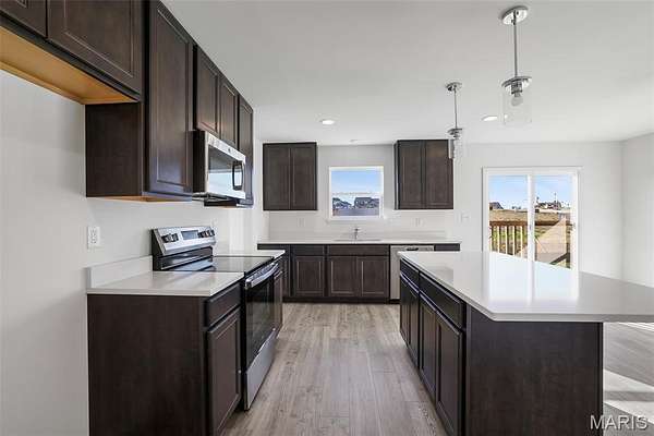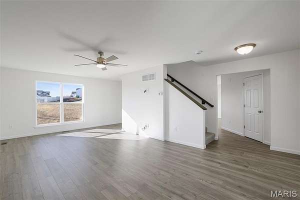 New McBride Homes Berwick, 2-story home, 3 BR, 2.5 BA ready this spring! Craftsman exterior! Perfect for entertaining, enjoy wood laminate flooring & 6ft windows on the main level. The kitchen boasts quartz countertops, stainless steel GE appliances & level 4 Landen Burlap 42" cabinetry w/center island & breakfast bar. Adjacent, the breakfast area w/sliding glass door to the backyard. Huge living room w/2 large windows for natural light. Upstairs the primary suite has a walki-n closet, private bath w/double sink vanity, linen closet, & 5' walk-in shower. Two more bedrooms, full bath, & 2nd floor laundry add convenience. Other features include white two panel interior doors, powder room, upgraded lighting/plumbing fixtures, & more! Located in House Springs, this community features 263 homesites off Bear Creek Road, just east of Gravois Road and Carol Park Road. Enjoy peace of mind with McBride Homes' 10 year builders warranty & incredible customer service! Similar photos shown.