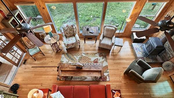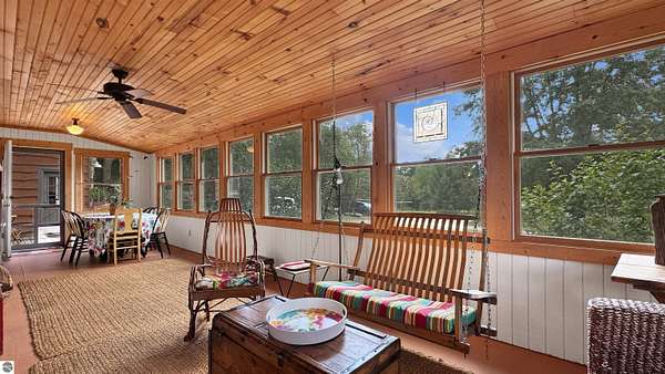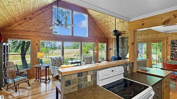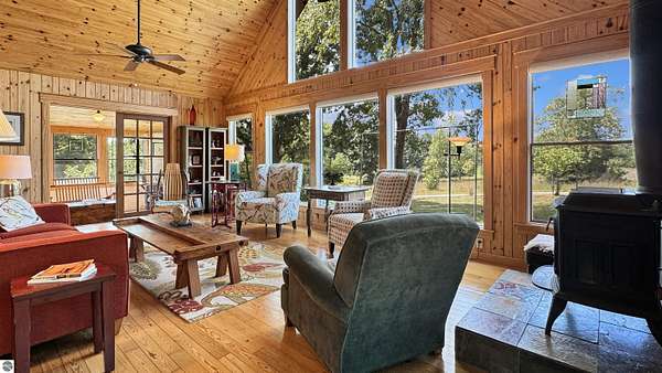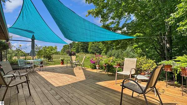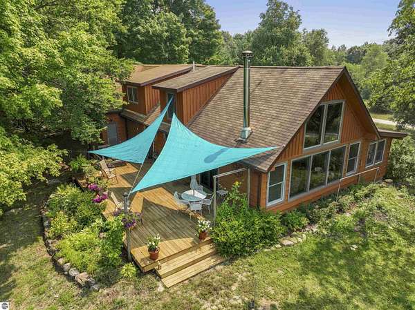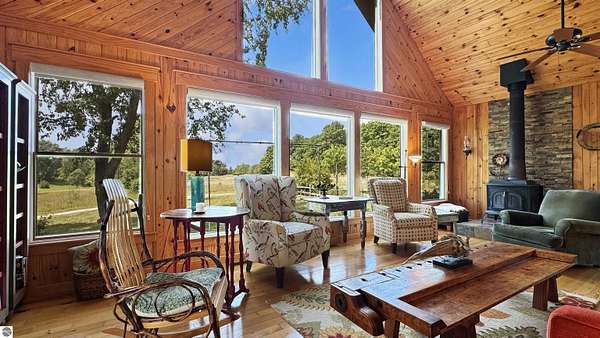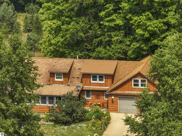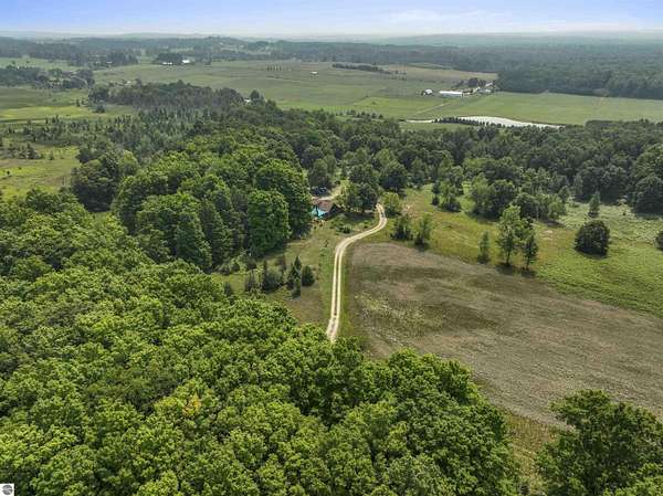 Nature lovers' paradise awaits with this 80-acre homestead sanctuary. Located at a dead-end road in the Luther countryside, the land is bordered by 1000s of acres of hunting preserve and touches 1000s of acres of state land on the southwest corner. The land has been well preserved with conservation practices and offers great hunting and recreational opportunities. There is the ideal mix of hardwoods, some evergreens, open meadows, rolling hills, cedar swamps, and the South Branch Twin Creek flows through the southern edge. There is also a spring-fed pond for fishing, playing, and further enhancing the wildlife habitat. The nearly 2000 sq ft home was added to the property starting around 1996, and blends well with the natural setting. Inside, you will find plenty of natural light with the western-facing wall of windows, and just the right mix of knotty pine and modern touches. The main floor has an open loft concept, a main floor bedroom, another bedroom or office, a full bath, and the laundry. You will also find a 3-season, fully finished porch on one side of the home, and French doors to the outside deck area on the other side. Upstairs is home to the loft bedroom or family room, a half bath, and another sizable bedroom. There is a massive unfinished bonus space above the garage with endless possibilities. The oversized finished garage features an enclosed heated workshop area. The 80 acres has a trail system throughout and include two elevated hunting blinds. There are three areas already established for food plots. The unique quality of the location of this property can only truly be felt and experienced by an in-person visit.