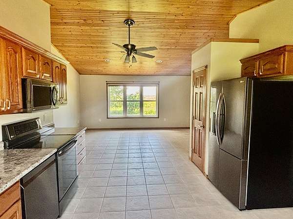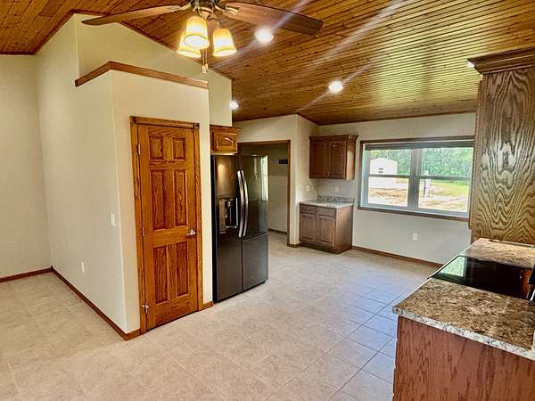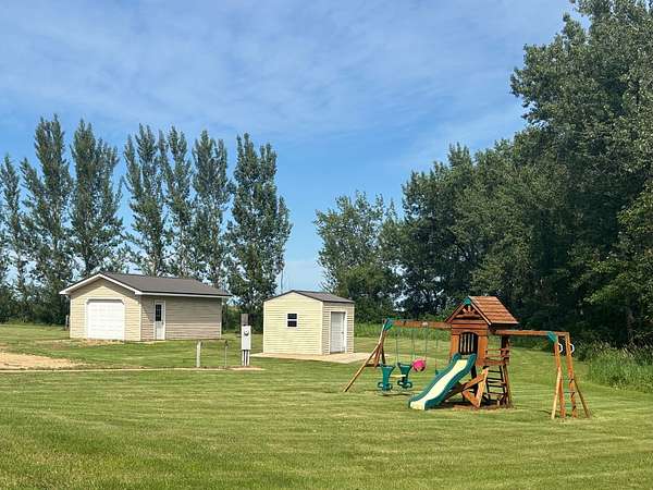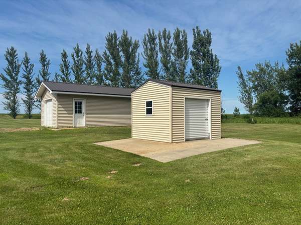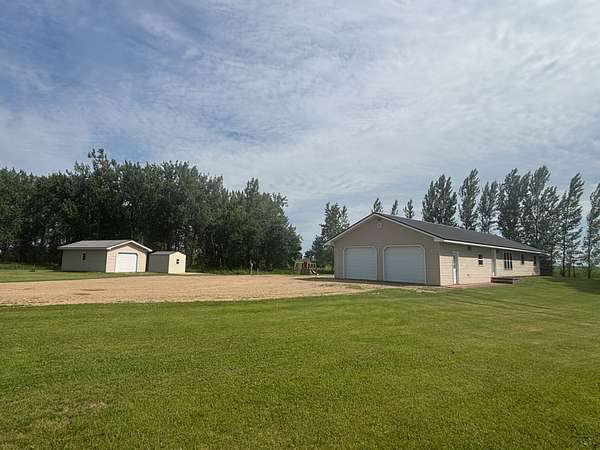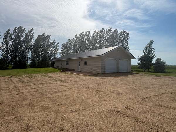 Discover your country-living dream with this move-in ready home set on just over 10 acres in the heart of northeast South Dakota's beautiful glacial lakes region, only 6 miles north of Webster. Built in 2005 and thoughtfully updated, this one-story home sits on a concrete slab and features in-floor heat with tile flooring throughout-comfort and durability all in one. The open layout includes vaulted ceilings in the kitchen and living area, along with a spacious, well-designed kitchen equipped with LG black stainless steel appliances. You'll find 3 bedrooms, 1.5 bathrooms, and electric forced-air heating and cooling for year-round comfort. Exterior highlights include vinyl siding, vinyl windows, new entry doors, and a long-lasting steel roof. A 28x28 attached garage-heated and insulated-is perfect for vehicles, hobbies, or extra storage. You'll also appreciate the 16x24 detached garage and a 10x12 storage shed. The property is connected to WEB Rural Water. Outside, the setting is peaceful and scenic, surrounded by mature trees and plenty of room to enjoy the outdoors. Located just 1/3 mile off SD Highway 25, this property offers easy access to both Webster and Roslyn while still giving you the privacy of true country living.
