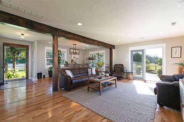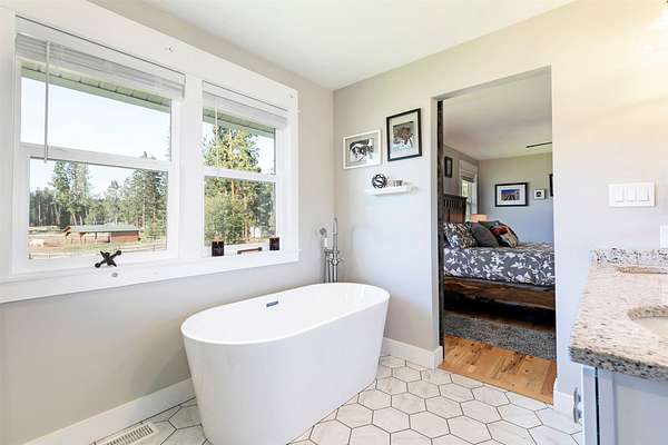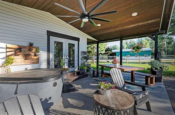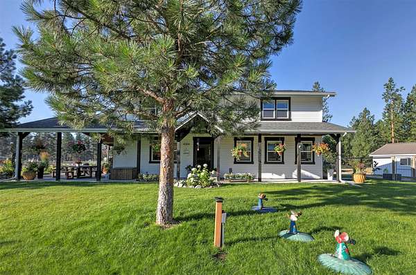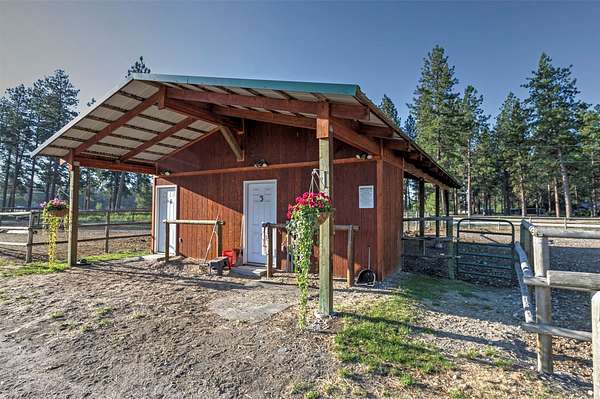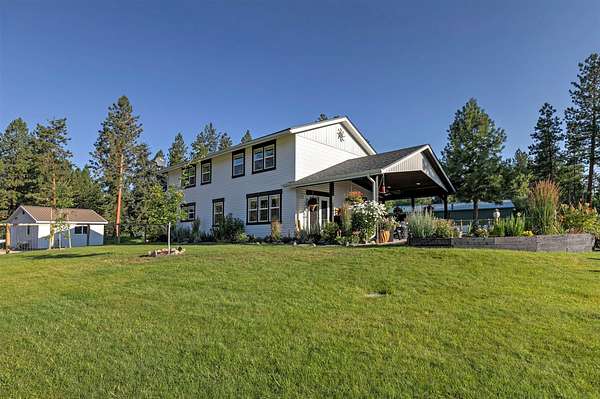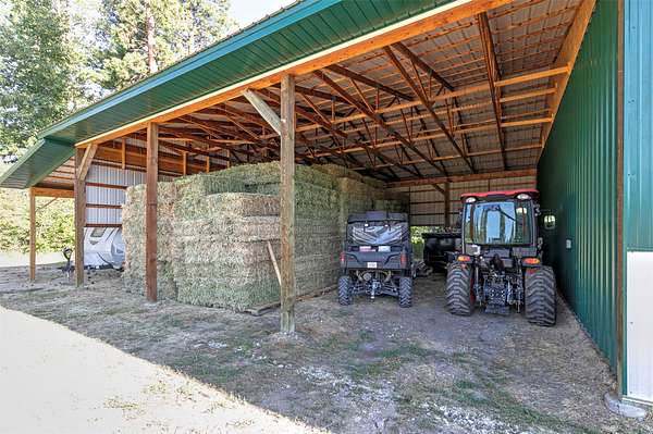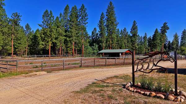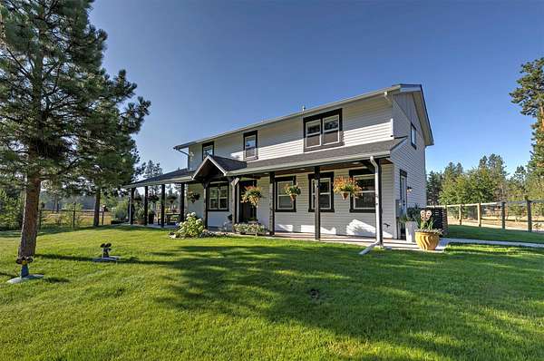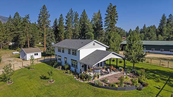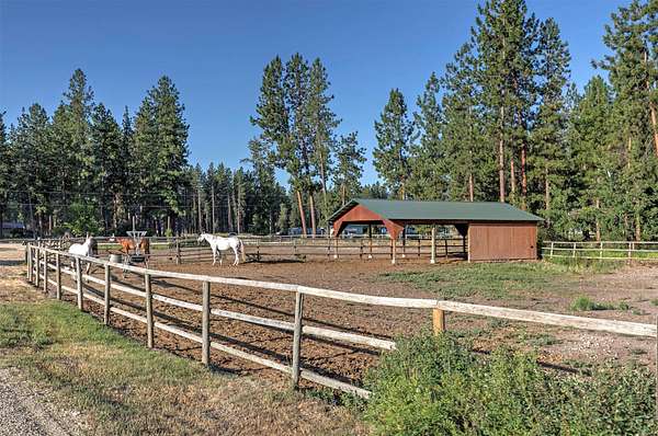 Located on 20 private acres in beautiful Florence, Montana, this well maintained horse property offers an incredible opportunity for equestrians, outdoor enthusiasts, or anyone seeking the space and seclusion that define life in western Montana. With mature ponderosa and aspen trees, private walking trails, and regular visits from deer, elk, wild turkeys, and other wildlife, the setting feels miles away from everything, while still just being 15 minutes from Missoula. The two-level home offers 2,100 square feet of thoughtfully-designed, comfortable living space, with three bedrooms, three bathrooms, and the addition of a new gas fireplace on the main level! All the bedrooms are upstairs, and both the interior and exterior were completely remodeled six years ago. Outdoors, the property shines. The private backyard includes a beautiful patio area, a full in-ground sprinkler system, and raised garden beds. Just beyond that, the land opens up to accommodate a fully functioning horse setup. The current owners lease out the horse boarding operation to a long-term tenant, and there are presently 16 horses on the property. Horse infrastructure includes a private outdoor dressage riding arena, eight separate corrals, a pole barn, and several outbuildings for hay and tack storage. The combination garage shop hay building measures 94 by 40 feet, with 48 by 40 enclosed, insulated, heated and equipped with 50-amp and 30-amp connections. There's also a separate 20 by 20 insulated and heated shed. A newer tractor with heat and air conditioning, as well as 10 attachments and mowers, can be included or negotiated with the sale. The Bitterroot River is just a short walk or ride away, adding to the appeal of this stunning property. Whether you're passionate about horses, love to garden, or simply desire space and solitude, this Florence property offers the best of Montana living-privacy and comfortable living in a gorgeous setting.