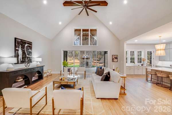 Spring Opportunity: Seller offering up to $50,000 toward design selections or closing costs with an approved offer-an exceptional value not expected to remain available for long. Discover this architecturally stunning 5-bedroom, 4.5-bath custom home nestled on 1.63 private wooded acres in the exclusive gated community of Riverchase Estates. Offering 4,657 square feet of refined living space, this is one of the largest homes in the community, showcasing 10-foot ceilings on the main level, 9-foot ceilings upstairs, and exceptional craftsmanship throughout. The dramatic two-story great room features a wall of sliding glass doors that open to a vaulted screened porch with a stone fireplace-creating seamless indoor-outdoor living and an ideal setting for year-round entertaining. The gourmet kitchen impresses with premium Thermador appliances, a built-in refrigerator, oversized island, custom cabinetry, and a spacious walk-in pantry designed for both style and function. Retreat to the luxurious main-level primary suite complete with a fireplace, private sitting area, and spa-inspired bath. A secondary bedroom with ensuite is also located on the main level, ideal for guests or multigenerational living. Upstairs, enjoy a spacious bonus/media room, private office, two additional bedrooms, and abundant walk-in attic storage. Additional highlights include a large laundry room, full-yard irrigation, a pool-ready backyard, and an oversized three-car garage offering more than 1,500 square feet-perfect for storage, a workshop, or a home gym.
