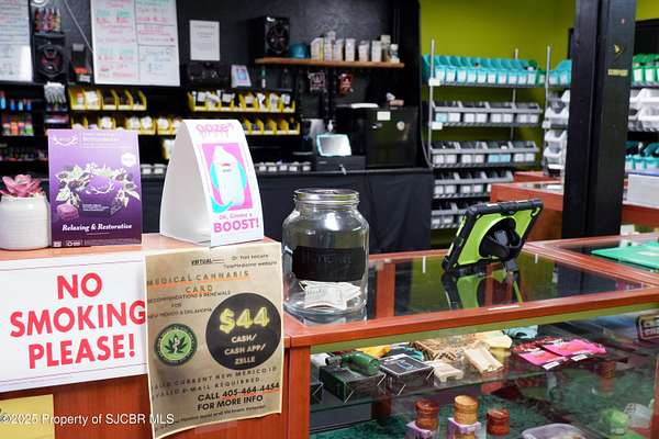 Here's a rare opportunity to own a profitable, fully licensed dispensary plus the commercial property it operates from. Situated right off US 64 at the entrance to Kirtland, this property offers 5,000 sq. ft. of versatile space on 2.38 acres of fully fenced and cross-fenced land with prime highway frontage--and room to expand.The building includes a retail/showroom area, reception, flexible office space, storage (including a 10x16 secure vault), restrooms, and warehouse/shop potential. Ample paved parking, fencing, outdoor lighting, and security cameras provide convenience and safety. Because the property sits in the county rather than within city limits, you'll have flexibility to explore opportunities many city dispensaries can't--such as the possibility of a future consumption lounge.An additional separately fenced lot to the east includes a billboard that's currently leased month-to-month, generating extra income and transferring with the sale.Whether you're expanding your brand or making your first move into the cannabis industry, this turnkey business and property package is a smart investment with multiple revenue streams.Serious inquiries only. Please do not under any circumstances disturb business operations or approach staff without an appointment with brokers.