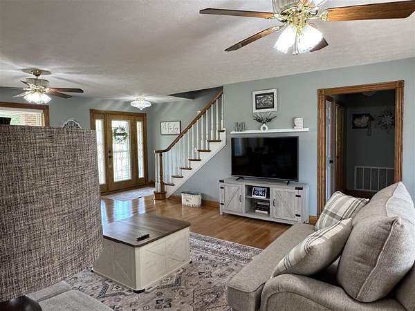 This is peaceful living at it's best. This brick beauty boasts tons of upgrades, beautiful inside and out plus 42 +/- acres just minutes to Barren River Lake. The long asphalt driveway will lead you to this immaculate home, tucked away from any neighbors or traffic. Step inside and you'll love the hardwood floors throughout, oversized primary suite with double vanities and closets plus a walk in shower. The living/family area has a sun room off to the side to just sit and stare out across your farm and admire the small fruit orchard out back. This kitchen is amazing. The center island has an oversized drop in range, a coffee bar, not one but two nooks, dining area, tons of custom cabinetry and backsplashes. Upstairs you'll find two more oversized bedrooms and a full bathroom, great for a growing family. The walk out basement is fully finished. Downstairs you'll love all the extra room with a large family room, an office/4th bedroom, a full bathroom and small kitchenette with tile flooring. There is attic storage from upstairs as well as in the attached garage. Outside you'll find a deck in the rear, a 30' x 50' shop building that gives you room for all tools and toys whether for land or the lake, it's awesome. This beautiful farm offers ample pasture ground, young timber, a barn that had water ran to it and so much more. This southern Kentucky farm is nestled just near Barren River Lake and conveniently located just minutes from Scottsville, Bowling Green and Glasgow, KY. This location is 20 minutes from I-65 and just one hour north of Nashville, TN and the Nashville International Airport. One unit is recently replaced new, the roof has been replaced and the water heater was upgraded. With ample road frontage, this farm offers an investment for the future and an amazing opportunity with a beautiful very well maintained home. It's amazing, come see it today!