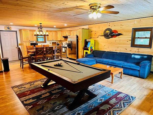 After only the first 12 months on VRBO and AirBnb this cabin has done $90,000 in gross rentals. Check out the newly added VIDEO TOUR. Luxurious Log Cabin Retreat with Spectacular Mountain Views in the Heart of the Smokies on 4.88 acres of land. Escape to the tranquility of the Smoky Mountains with this exceptional log cabin offering a blend of modern luxury and rustic charm. Nestled in the heart of Tennessee's enchanting landscape, this retreat promises a peaceful connection to nature alongside a host of unique amenities. More... Breathtaking Mountain Views: Indulge in peaceful panoramic vistas from the Hot Tub on your expansive screened porch. Enjoy the outdoor kitchen and dining area while the mountains' majestic beauty unfold before you, creating an ever-changing backdrop that captivates your senses and soothes your soul. A Spa-like Sanctuary: Inside, unwind in the lap of luxury with a custom whirlpool tub in the master bath. The second bath includes a luxurious, custom, rain-head shower. Embrace relaxation as you soak away your cares, enveloped by the cabin's serene ambiance. Ultimate Entertainment: Experience cinematic wonderment in the comfort of your own cabin. A drop-down screen paired with a high-definition projector in the master bedroom transforms your evenings into magical movie nights. In the living room, a one-of-a-kind multiple screen theater-style TV setup awaits, offering immersive entertainment for every occasion. Spacious Living: The open-concept living area exudes warmth, featuring a wood ceiling and tongue and groove pine walls and a unique 'log' wall. For the kids, there is a PS4 Playstation with multiple games. Cozy up by the gas log fireplace on cool evenings, or simply bask in the inviting ambiance that seamlessly blends rustic aesthetics with modern comfort. The Granite countertops in the kitchen are part of the upgrades the seller has made. An open concept allows the cook to be part of the conversation in the great room. Tranquil Bedrooms and Baths: Two full bedrooms provide restful havens, each offering a unique ambiance. Wake up to the breathtaking sunrise from the master bedroom, where the mountain views greet you with a gentle embrace. Two full baths ensure convenience and comfort for all. Outdoor Oasis: Embrace the crisp mountain air and the beauty of nature while relaxing by the outdoor gas fireplace. Whether sharing stories with loved ones or indulging in a moment of quiet reflection, this space offers the perfect retreat. Enchanting Kids Playhouse: Delight the young ones with a one-of-a-kind kids' Tree-House playhouse that sparks imagination and creativity. A place where magical adventures unfold, this charming addition adds a touch of whimsy to your mountain escape. Proximity to Nature and Entertainment: While surrounded by the serenity of the mountains, you're just a short drive away from an array of outdoor activities, hiking trails, and cultural attractions. Explore the vibrant local scene, including artisan shops, dining, and entertainment options. Dollywood and Pigeon Forge are less than 12 miles away and the best entertainment of all is the Great Smoky Mountains National Park. You must see this cabin to appreciate the upgrades, and why this will be a winner in the Short Term Rental market. Be sure to view the Video Tour