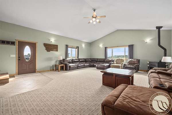 Where rural charm meets modern living, this property offers room to breathe, space to grow, & the comfort of home with a thoughtful layout for multi-generational living. Just minutes from Laurel, this 8 Bed / 3 Bath home sits on 14.29 fenced & cross-fenced acres. Built in 2006, the MAIN LEVEL offers 2,492 sq ft with 4 beds, 2 baths, spacious kitchen, living & dining areas, laundry, fireplace & 570 sq ft wood deck for entertaining or quiet evenings under the stars in the hot tub_The walkout basement guest quarters was designed with flexibility in mind. Featuring a private entrance, driveway, kitchen, living room, 4 beds, 1 bath, & its own covered patio (ideal for multi-gen living). Extras include an 864 sq ft pole barn w/220 power_RV plug_Horse Shelter_2 sheds_5,500-gal buried cistern_New furnace (2020)_central A/C_1,000-gal propane tank. Quiet country setting with convenience close by!