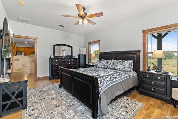 Est $3,592/moHere is your opportunity to purchase a beautifully maintained home just a few miles north of Jourdanton, Texas. Custom built in 2009, and has been well maintained! The open floorplan has the master bedroom separated from the other two bedrooms by an oversized living room with oversized wood-burning stone fireplace. The kitchen features an island, oversized pantry, stove with two ovens, and plenty of cabinets for your storage needs. The spacious master bedroom has dual closets and an over-sized master bathro